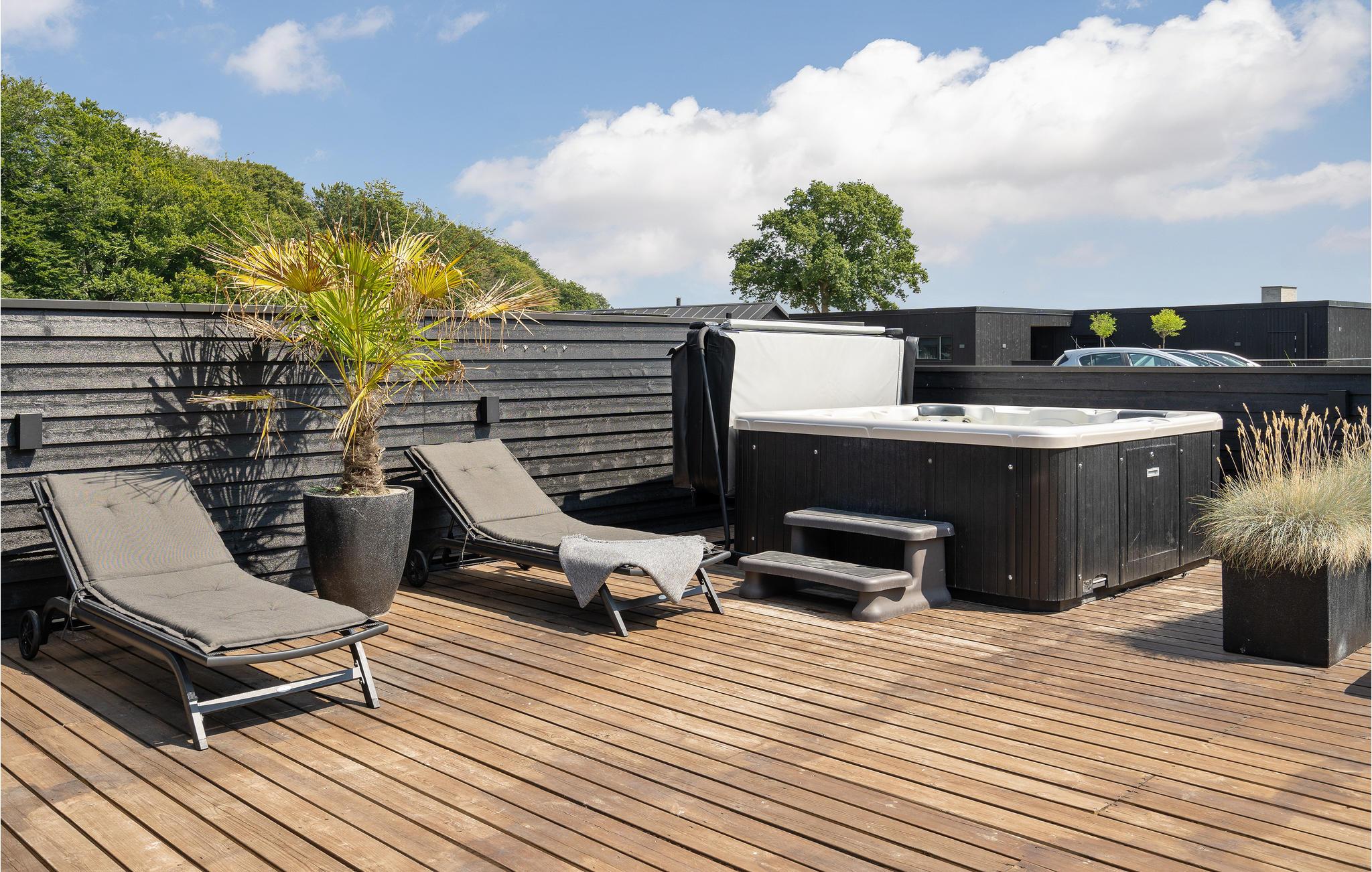 Velkommen til et luksuriøst wellness-sommerhus nær Sandersvig strand med spa, sauna og mange aktiviteter.