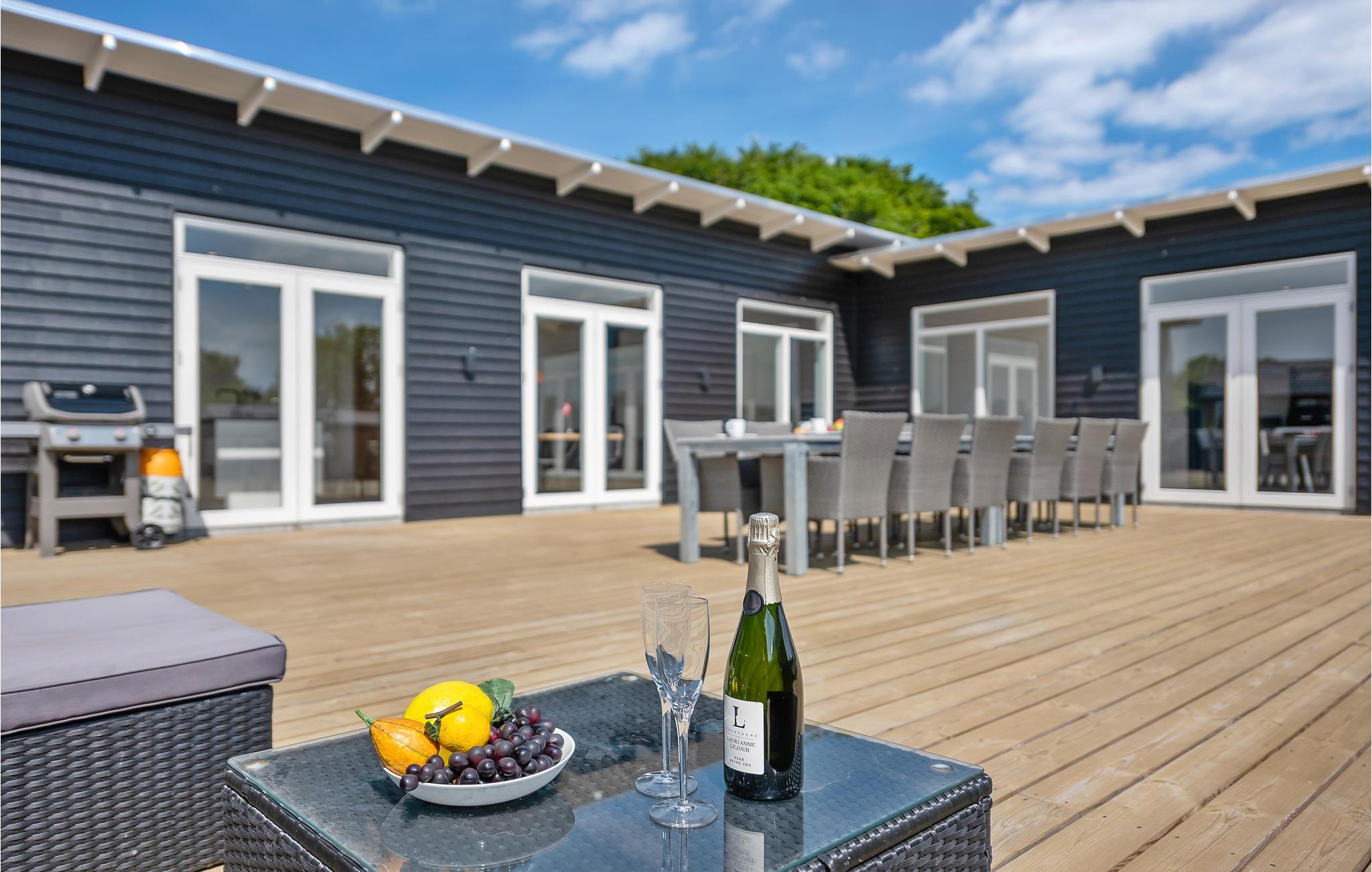 På den store terrasse finder I det lækre udespa, der kan bruge året rundt. Der er brugt gode byggematerialer, og huset er indrettet med komfortable møbler. Nyd ferien og måltiderne på den store terrasse med havemøbler og liggestole.