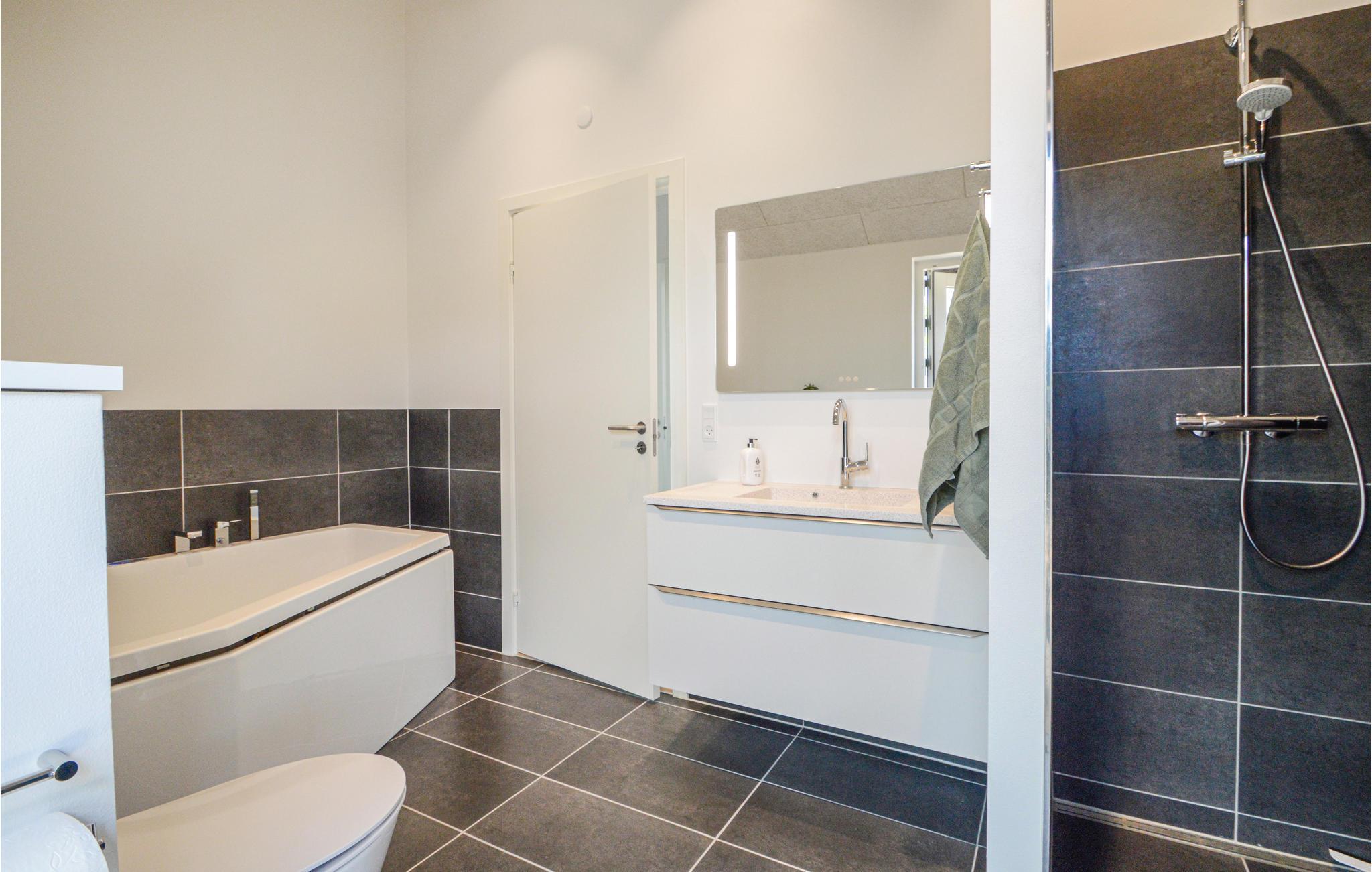 Endvidere er der 2 flotte badeværelser, med henholdsvis spabad og infrarødsauna til de ømme muskler, og selvfølgelig er der både vaskemaskine og tørretumbler, så I behøver ikke at tage alt for meget ekstra tøj med på ferien. Udendørs er der gode terrasser rundt om huset, hvor solen og udsigten kan nydes, ligesom I kan nyde et svalende bad under udebruseren, efter at have været aktiv i de forskellige udendørsaktiviteter huset også byder på.