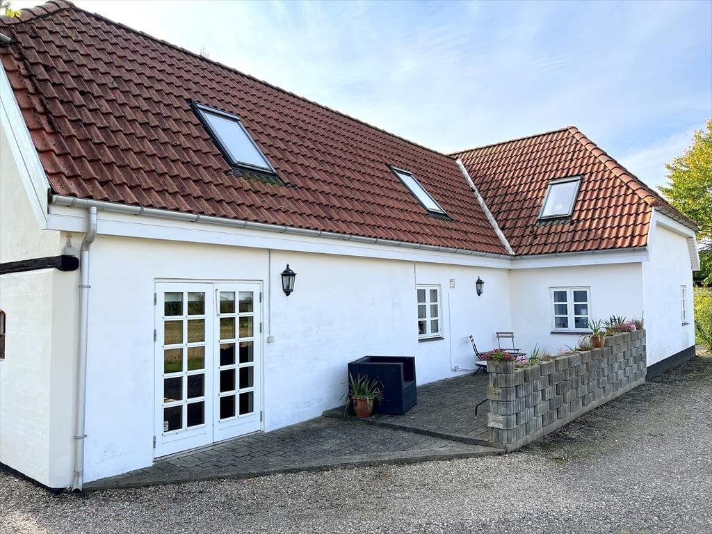 Ejendommen ligger på en stor grund ud til åbne marker og med kirken som nærmeste nabo. I haven er der anlagt en lille sø, hvor der også er en terrasse. Oplagt til et glas vin i solskin, mens grillen gøres klar. Herudover er der rig mulighed for både sol, skygge og læ på den 200 m2 store terrasse, med havemøbler, liggestole og naturligvis en grill.