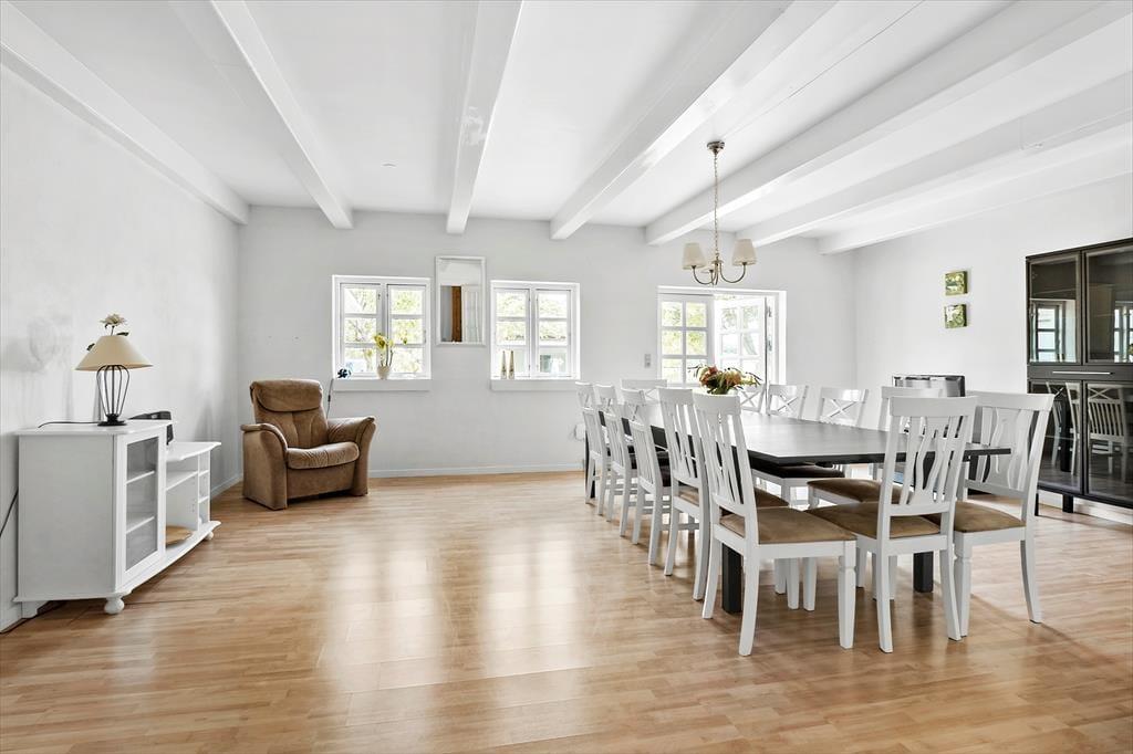 Flot, rummelig og moderniseret landejendom. De 350 m2 giver rigeligt med plads til den store familie. Huset indeholder i stueetagen et dejligt køkken med spiseplads, en hyggelig stue samt 3 gode soveværelser. Herudover er der bryggers med vaskemuligheder, to badeværelser hvoraf det ene er udstyret med spabad og det andet med både bruser og badekar.