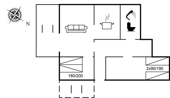 Der er i alt 2 soveværelser. Sovepladserne fordeler sig på: 2 sovepladser i dobbeltseng. 2 sovepladser i enkeltsenge.