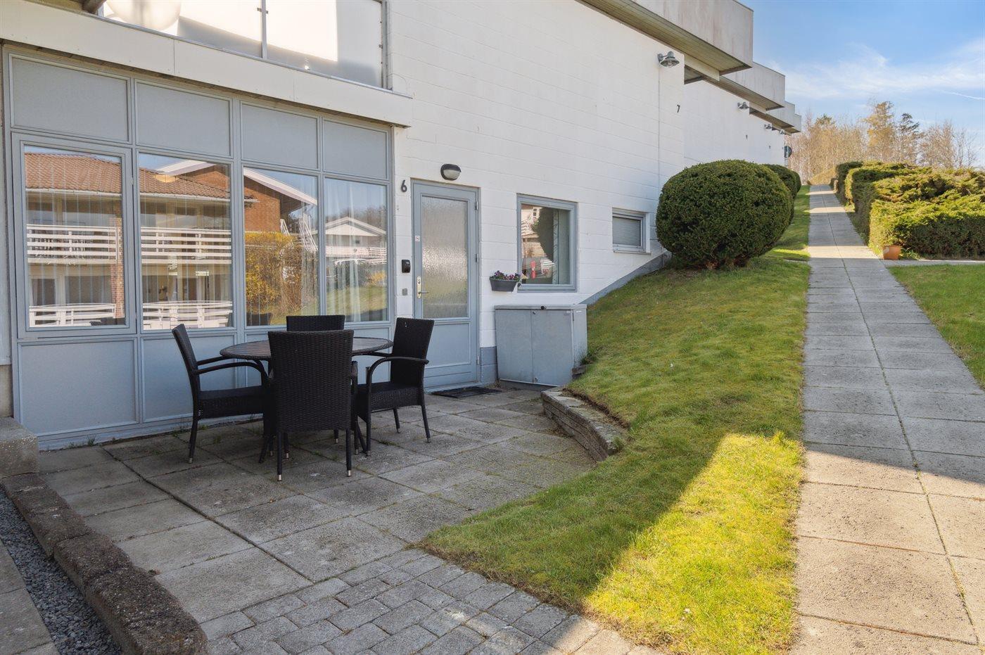 Lejligheden ligger i et kompleks, hvor der er fælles adgang til de grønne arealer, der omgiver bebyggelsen.