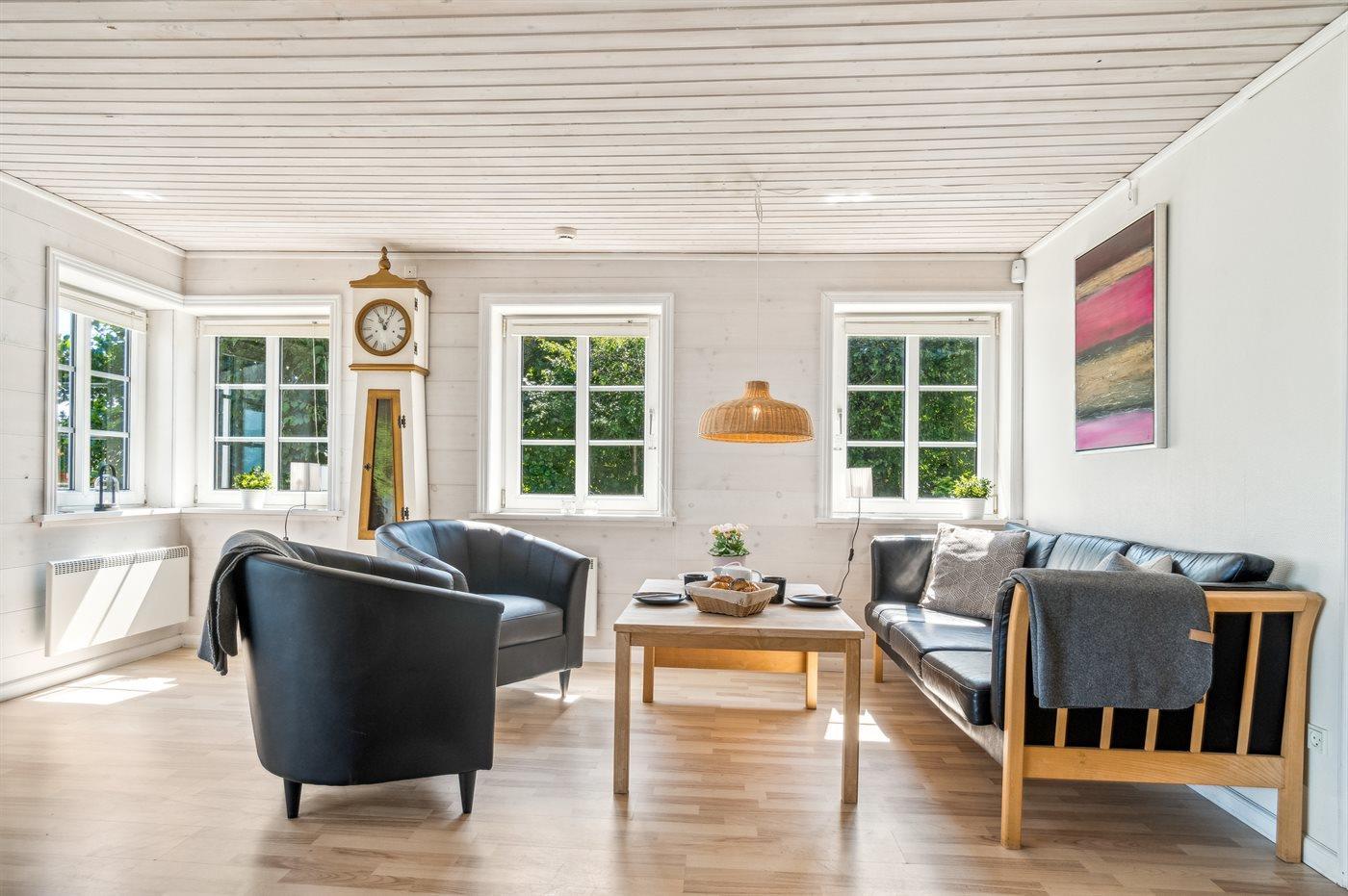 Især er det en nydelse at sidde og følge havets bevægelser og forandringer fra den lyse og hyggelige udestue. Huset er pænt møbleret, og de lyse gulve giver et lyst interiør.