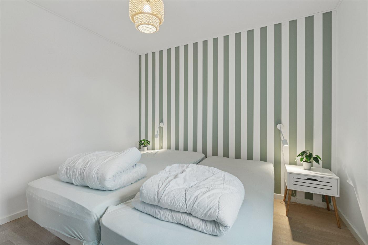 Lejligheden er indrettet med en stor opholds-/spisestue med TV og dobbelt sovesofa. Køkkenet ligger i åben forbindelse med opholds-/spisestuen og udstyret med bl.a. komfur med keramiske kogeplader, emhætte, opvaskemaskine og køle-/fryseskab. Der findes et stort soveværelse med dobbeltseng og skab samt et stort badeværelse med gulvvarme, bruseniche og vaskemaskine.