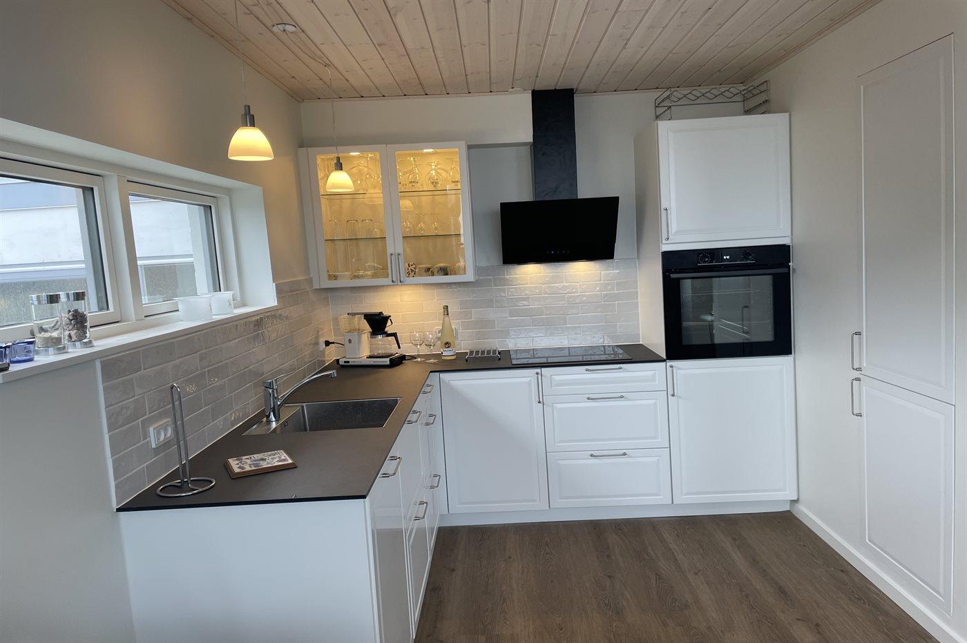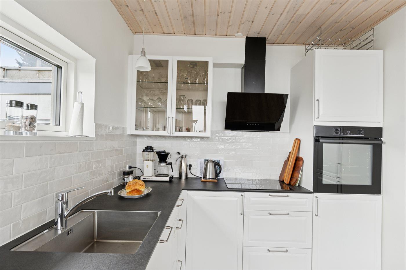 Køkkenet er udstyret med 1 køleskab. Der er 4 induktionskogeplader, varmluftovn samt opvaskemaskine.