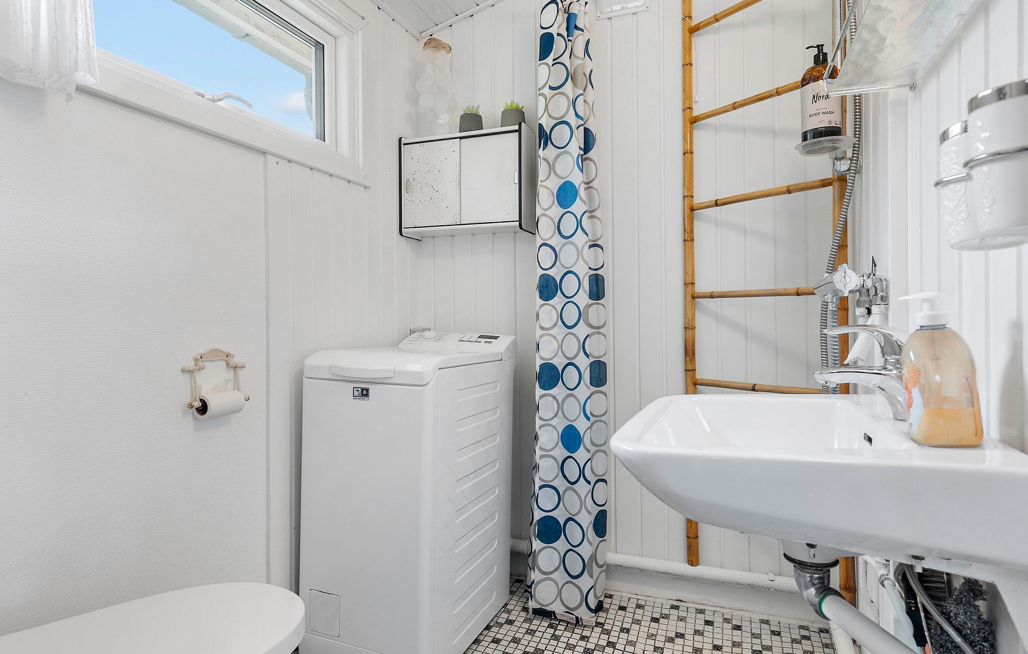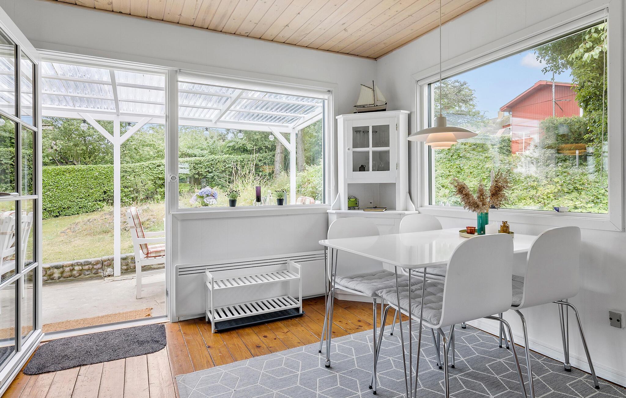 Der er sjæl og charme i dette skønne sommerhus i Sandkås, hvor boligens oprindelige detaljer er flot mikset med moderne bekvemmeligheder. Her får I et herligt udgangspunkt for jeres feriedage på Bornholms ikoniske østkyst. Opholdsrummet er lyst og rummeligt og har direkte adgang til den delvist overdækkede terrasse, så her glider ude- og indelivet sammen på bedste vis i sommerdagene. Begynd dagene med en solid morgenmad og læn jer godt tilbage, mens I nyder fuglefløjt og en kop kaffe i den grønne have.