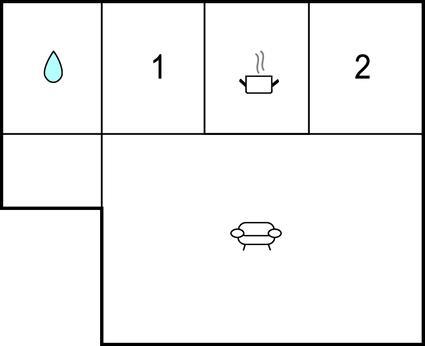 Opholdsstue - 2 Sovepladser. (Sofa, madras eller lignende).