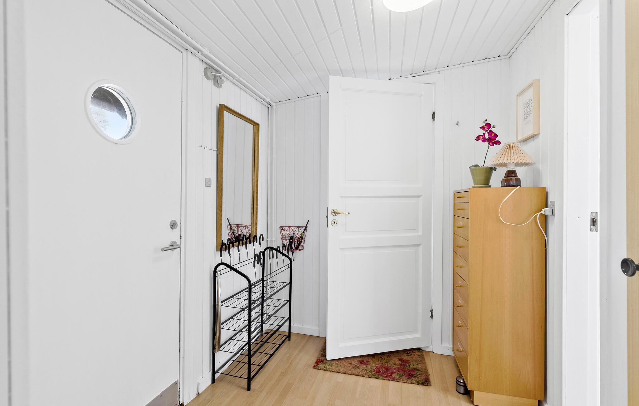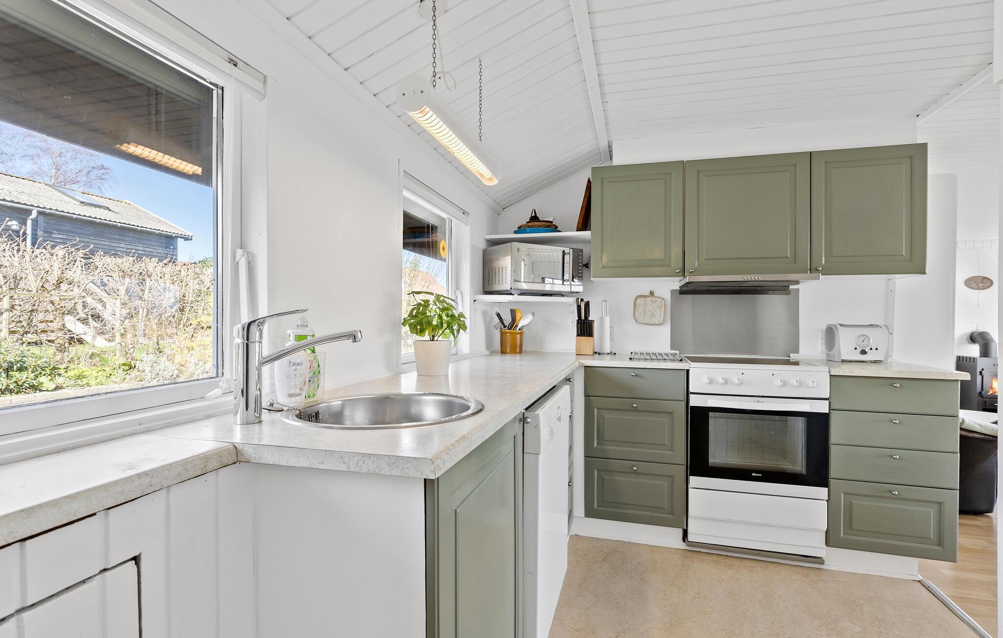 Huset er godt indrettet med brændeovn i opholdsstuen, køkken og tre gode soveværelser. Der er også en hyggelig udestue til kølige dage.