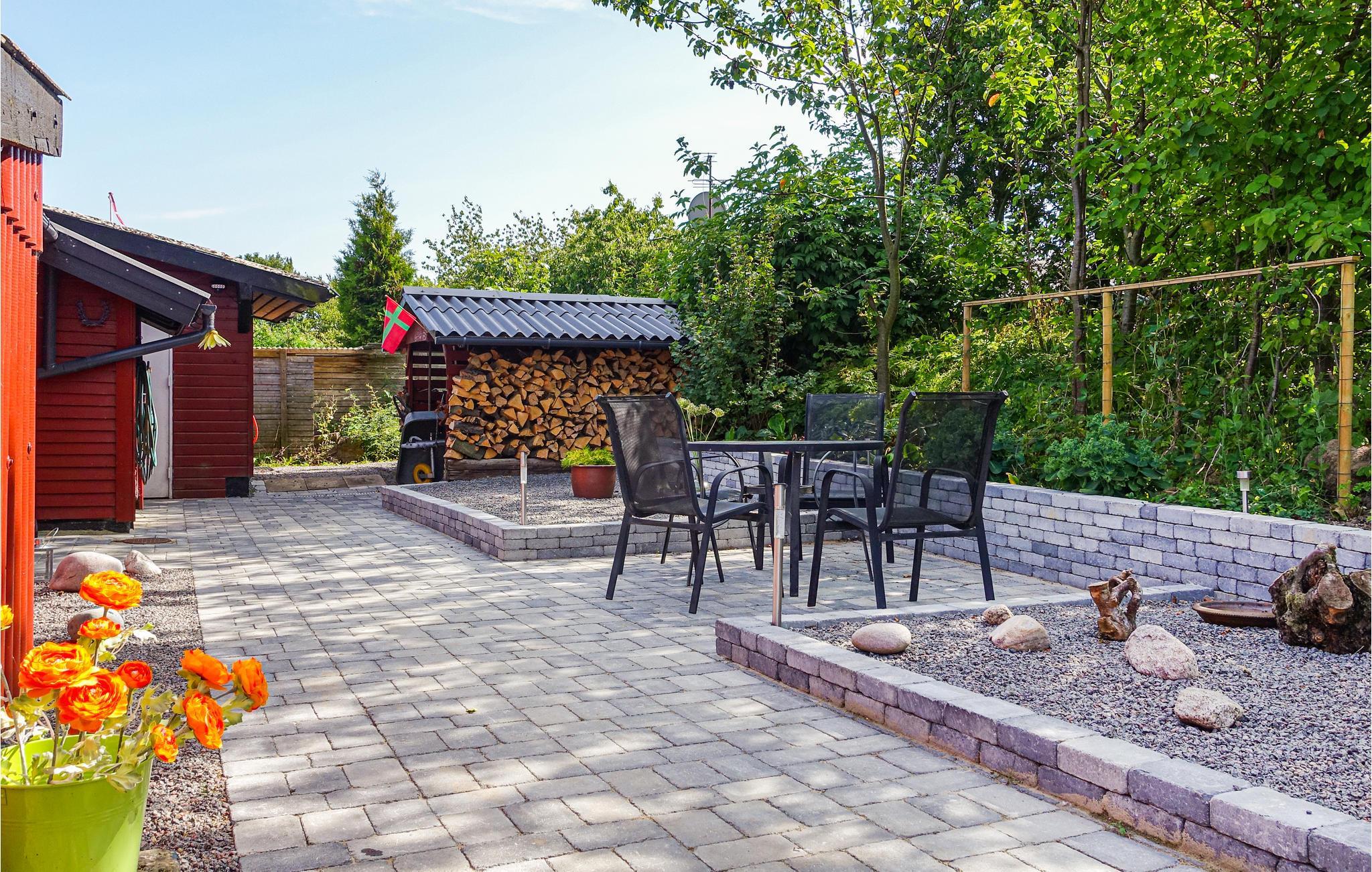 Dejlig have med bænkesæt og lille vandløb langs hækken samt to gode træterrasser, hvor I kan sætte jer med et glas vin i aftenstunden. Tænd op i grillen, hvis I vil spise hjemme en dejlig sommeraften.