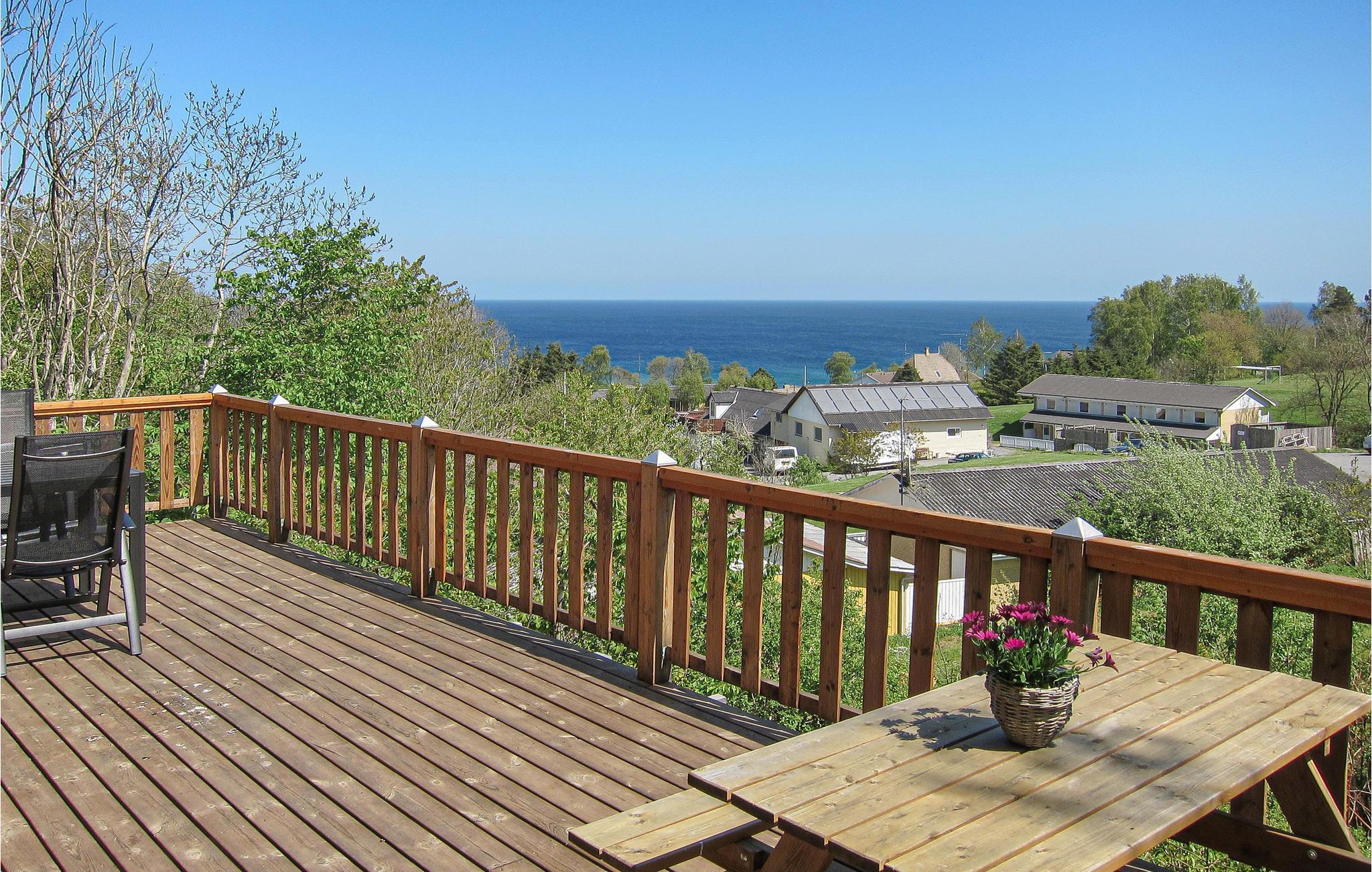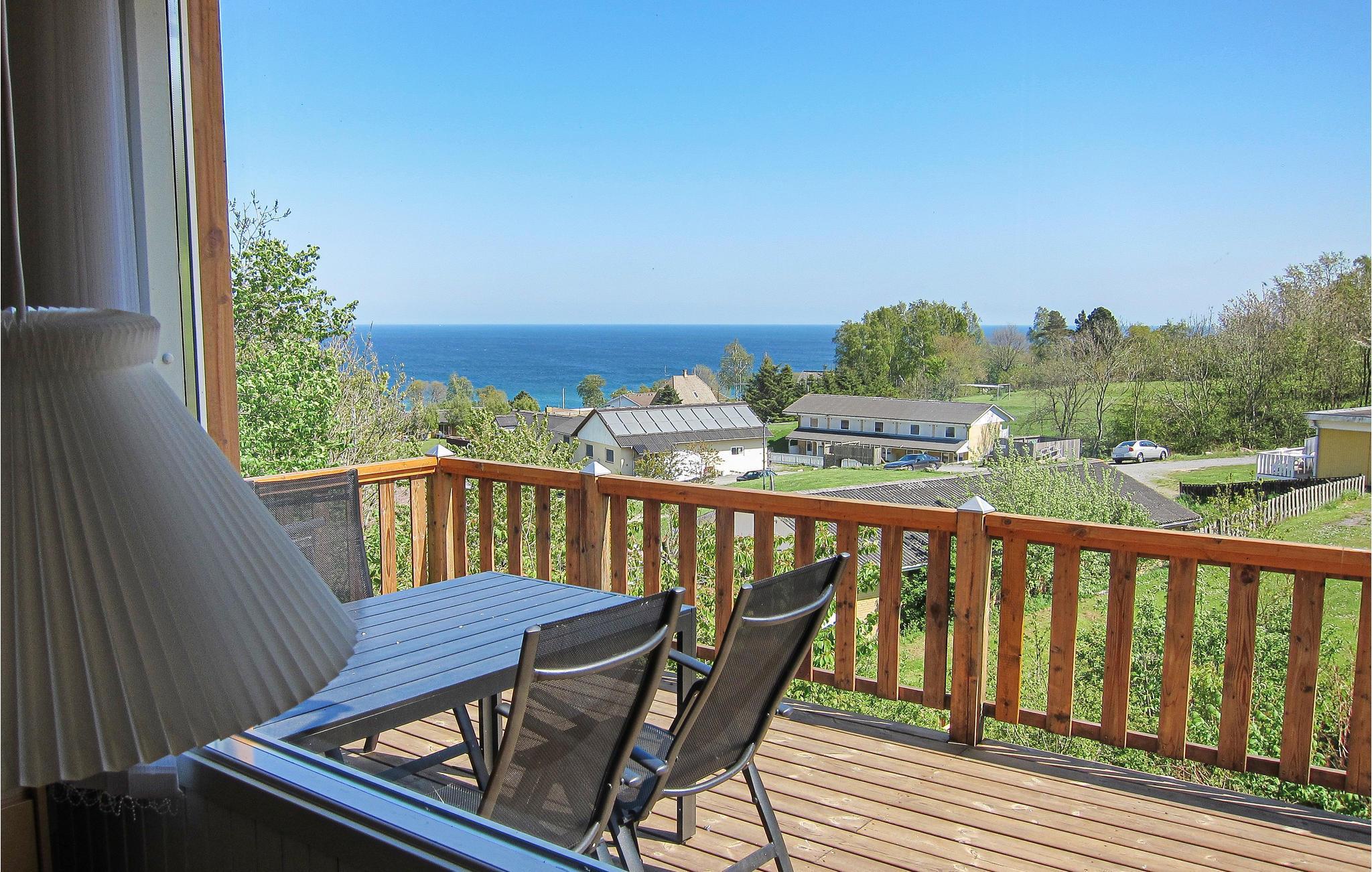 Hyggeligt sommerhus med havudsigt, terrasse, brændeovn og tæt på strand i Sandkås på Bornholm.