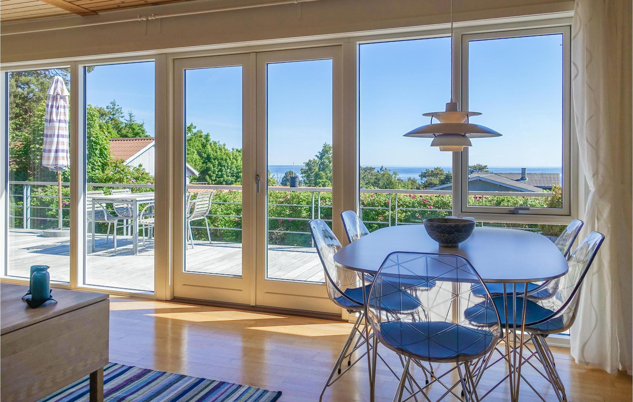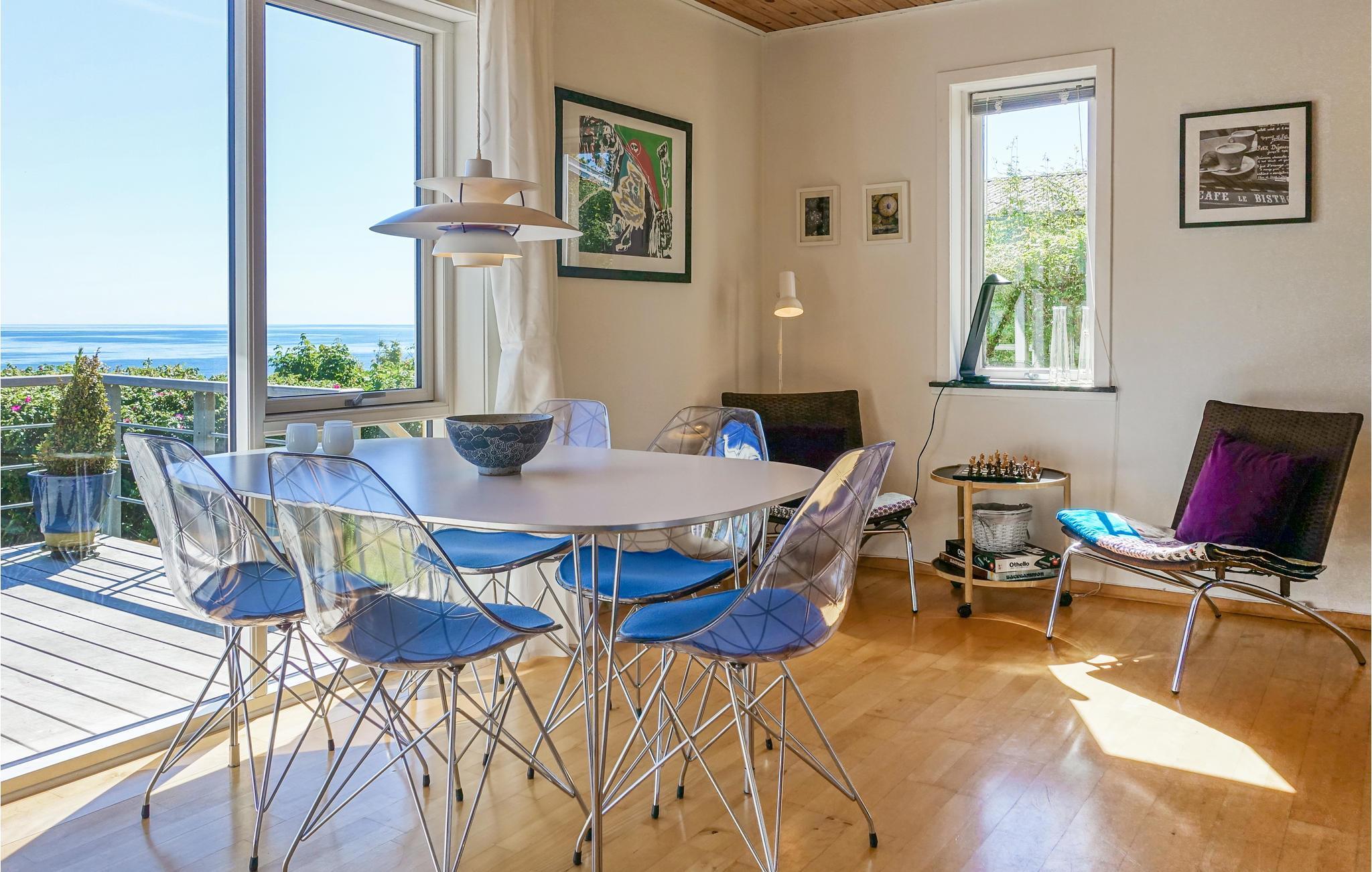 Huset er moderne indrettet med gode faciliteter, og der er panoramaudsigt til Østersøen fra stuen. Herfra er der udgang til en stor, dejlig træterrasse med havemøbler og grill, så her er der basis for skønne aftener, mens I kigger ud på havet. Der er desuden en solrig terrasse samt græsplæne i baghaven til solbadning og hyggelige grillaftener.