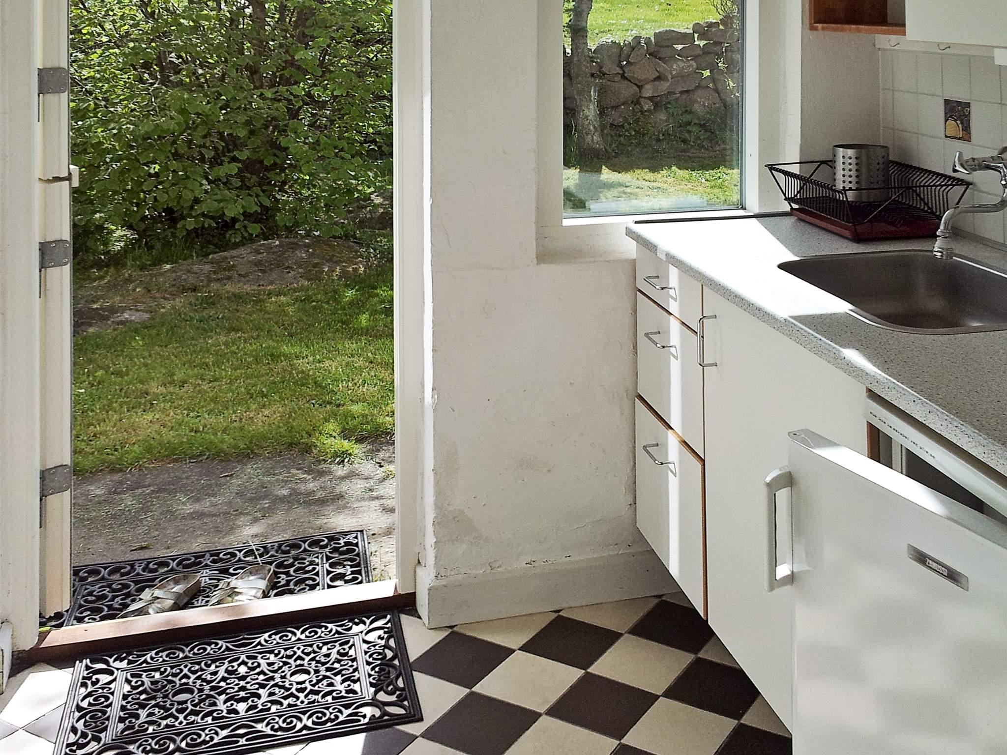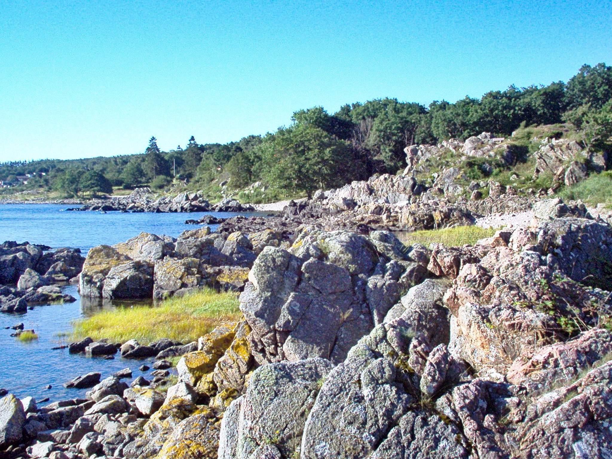 Her mellem Allinge og Sandvig tæt ved helleristningerne finder I et dobbelthus, som rummer to pæne og ugenerte ferielejligheder, begge med havkig. Det er kun den ene lejlighed der udlejes, den anden bruges af ejer og dennes familie og venner. Huset er spændende indrettet af en kunstner, og der er mange originale værker på væggene. Huset er konstrueret i flere etaper og derfor er der indgang til badeværelset fra terrassen og fælles vaskemaskine med nabolejligheden i depotrummet mellem de to lejligheder. Den skønne have med klippeudspring rummer også nordbornholms største figentræ og haven foran terrassen fra toiletbygningen ned mod havet, er forbeholdt jer som lejere. Det rigtige Bornholm er Nordbornholm, Krølle Bølles eget land og huset hedder, da også KrølleBøllehuset. Bemærk at sengene i køjerummet er 190 og at naboen er ganske tæt på, da der er tale om en rækkehuslejlighed.