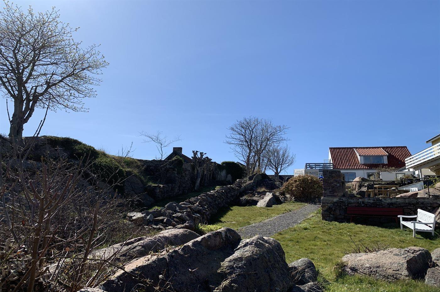 Den store grund, der præges af kystnærheden og klipperne i området er fælles med de øvrige lejere i det lille feriested Solhøj, der ligger nær ved Folkemødepladserne, hvor der i uge 24 vrimler med mennesker, men som ellers er et stille og roligt feriested. Her er der adgang til kyststier, Allinge Røgeri eller Nordbornholms Røgeri, konditoriet i Allinge og flere restauranter, der nok kan friste efter f.eks. en strabadserende tur hen over Hammerknuden.