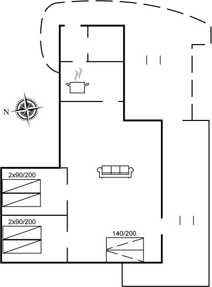 Der er i alt 2 soveværelser. Sovepladserne fordeler sig på: 4 sovepladser i dobbeltsenge. 2 sovepladser i sovesofa (dobbelt).