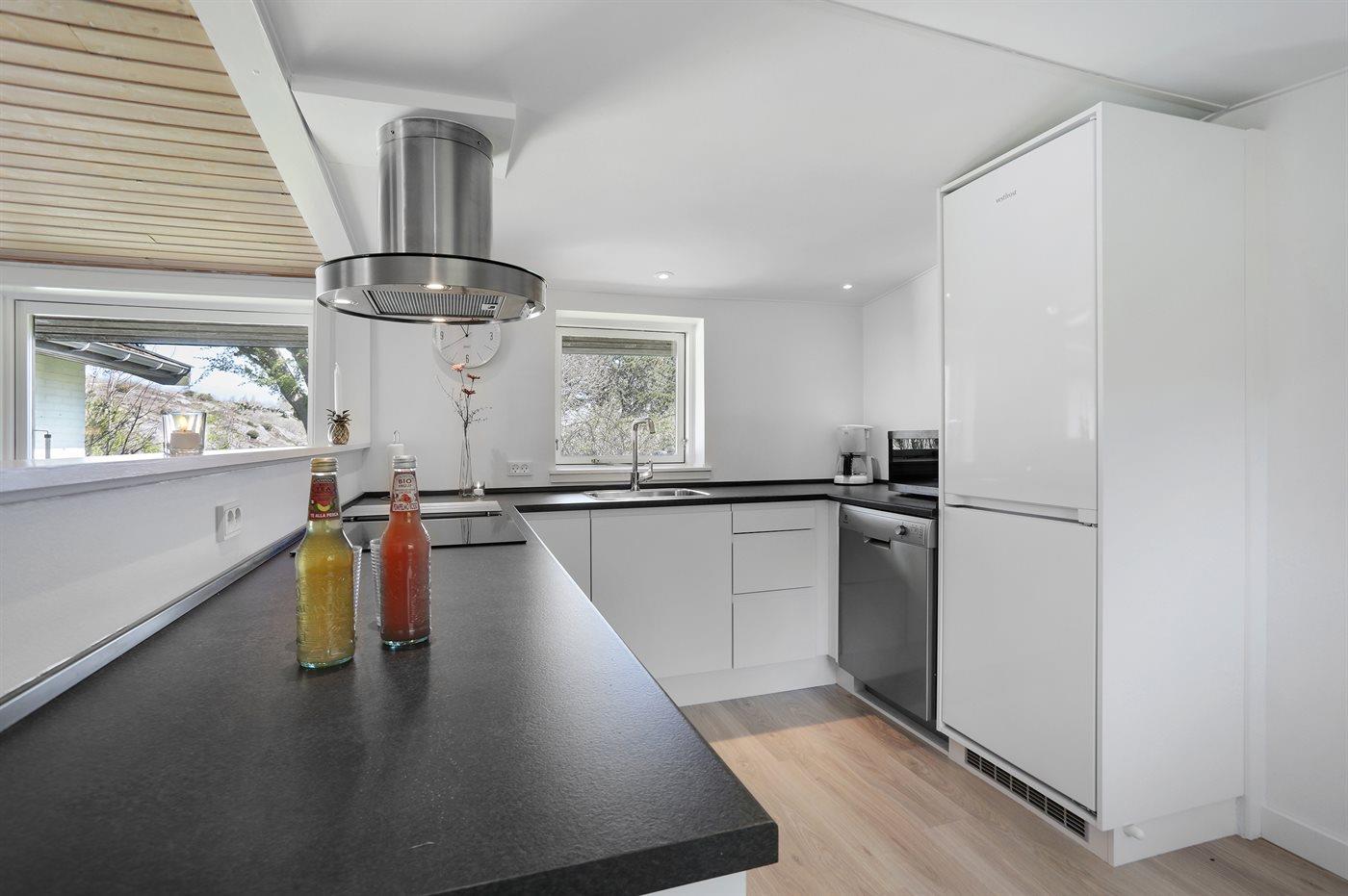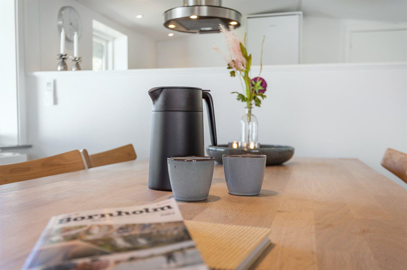 Køkkenet er udstyret med 1 køleskab. Der er 4 keramiske kogeplader, varmluftovn, mikrobølgeovn samt opvaskemaskine.
