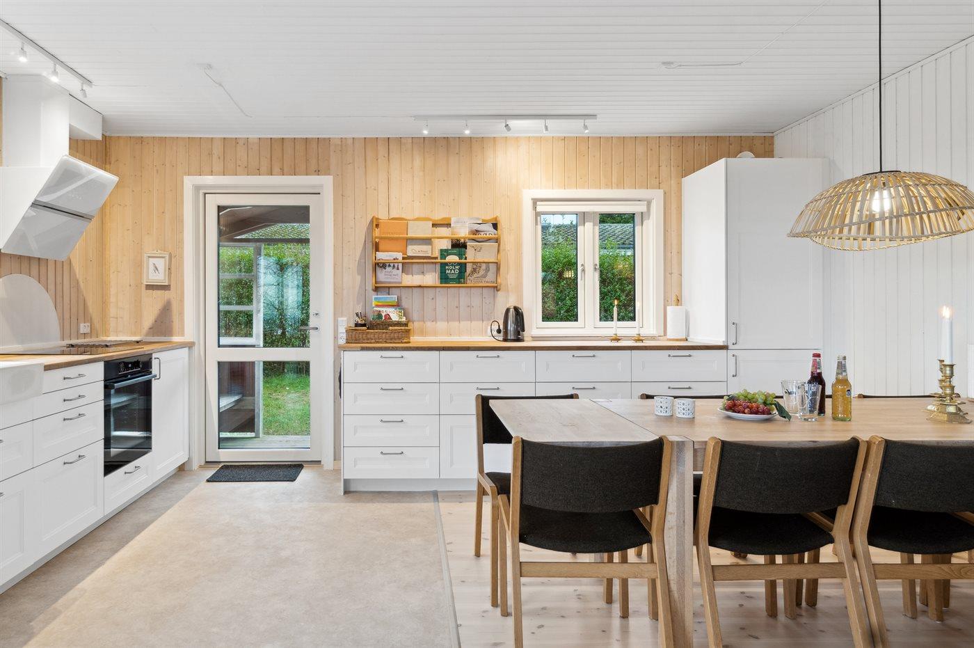 Køkkenet er udstyret med 1 køleskab, fryser og opvaskemaskine. Der er induktionskogeplader og varmluftovn.