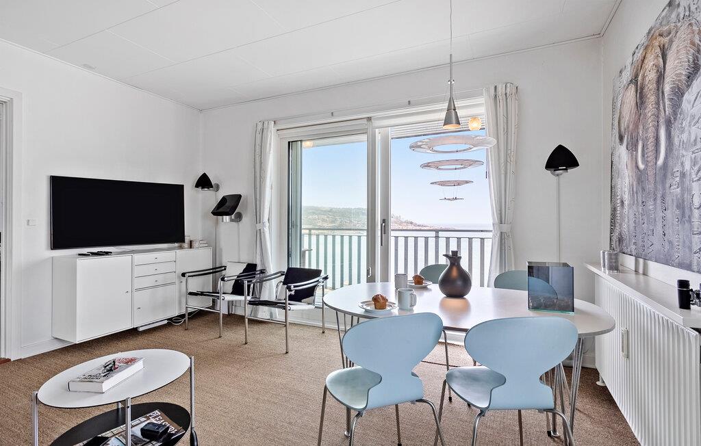 Glæd jer til denne moderne og velindrettede ferielejlighed, der kombinerer inde- og udeliv på en elegant måde. Så snart I træder ind, vil I nyde atmosfæren og charmen i lejligheden i maritime farver. Her vil I føle jer hjemme sammen med dem, I holder af, og skabe uforglemmelige minder. Oplev udsigten over det solbeskinnede hav fra lejlighedens balkon med kaffe og morgenmad på gavlterrassen i solen og læg planer for den kommende dag. Selvom Bornholm har en lang kystlinje, ligger boligen i Sandvig tættest på havet. Fra de tre altaner på anden sal har I sol hele dagen og den smukkeste udsigt over klippekysten, Sandvig havn, strandpromenaden, stranden, molen og Hammerknuden. Fra feriehuset kan I på nærmeste hold følge årstidernes skiften og de mange muligheder, som byen og naturen i Sandvig har at byde på. Om sommeren kan I ganske enkelt nyde husets vidunderlige beliggenhed midt på strandpromenaden, som er en forlængelse af den fineste sandlagune med en badebro omgivet af klipper og den smukkeste havbund. I baggrunden finder I øens vildeste vandresti, Hammerknuden.