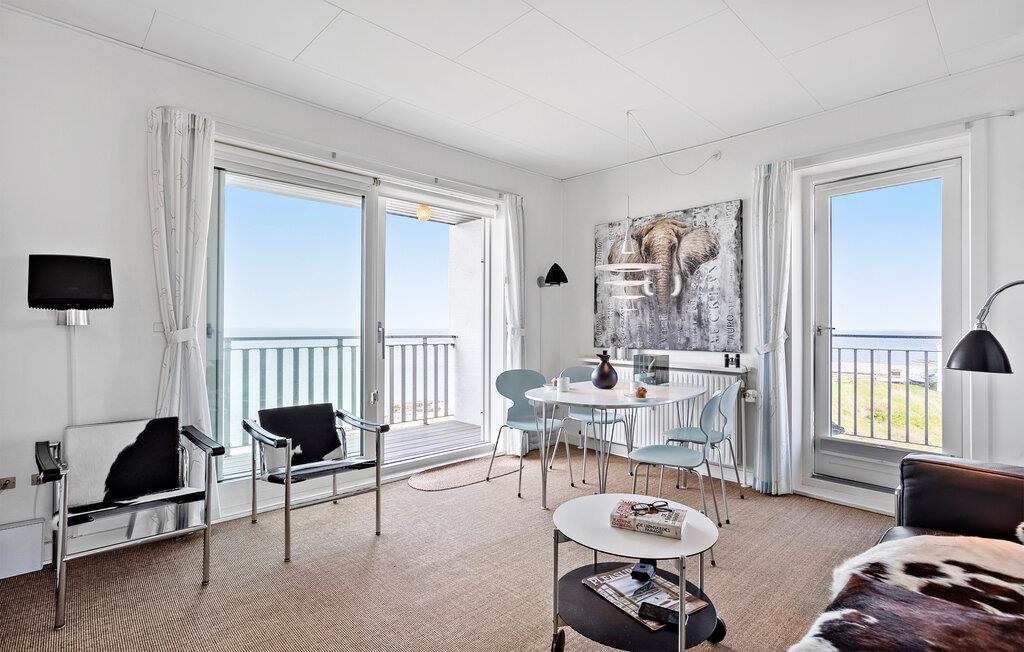 Moderne ferielejlighed i Sandvig med havudsigt og tre altaner tæt på stranden.