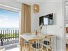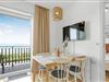 De elegante møbler og de lyse vægge får den naturlige atmosfære og interiøret til at fremstå solrigt og harmonisk. Her kan I tilbringe kvalitetstid med familien og nyde feriedagene, uden at skulle undvære noget. På altanen kan I sætte jer tilrette med morgenkaffen, mens I nyder de første solstråler.