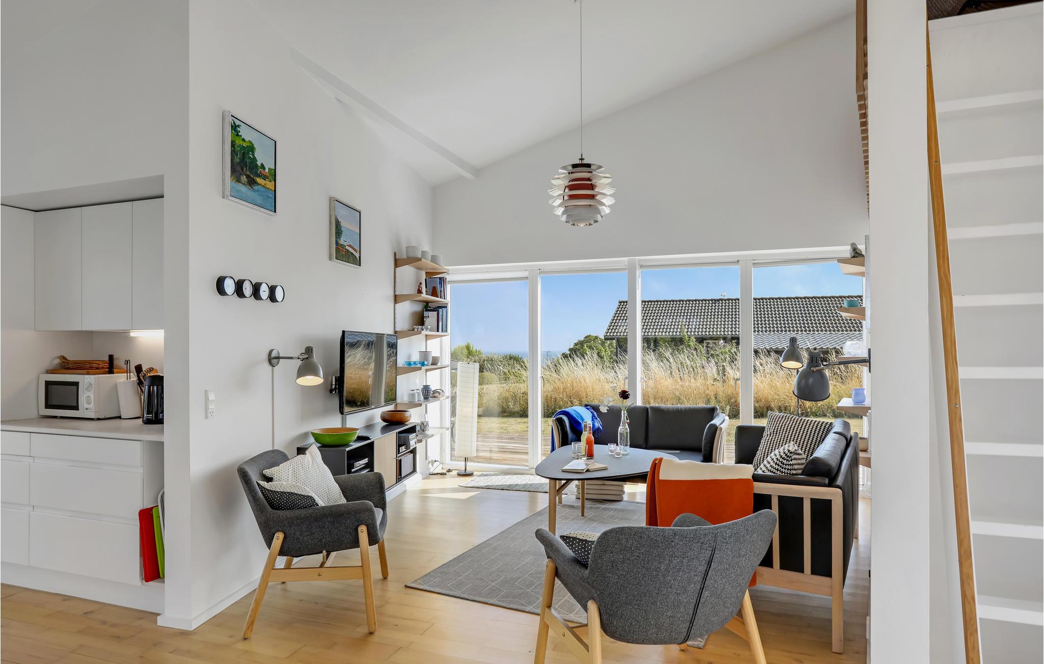 Tilbring en uforglemmelig ferie i dette smukke og fuldt udstyrede feriehus med havudsigt. Huset har højt til loftet, som udnyttes fuldt ud af et smukt og indbydende opholdsområde. Husets åbne indretning giver hele familien mulighed for at tilbringe masser af kvalitetstid sammen. Hvis I trænger til ekstra afslapning, kan I tænde op i saunaen i badeværelset. Bagefter kan I sætte jer ud i haven og nyde udsigten over havet.