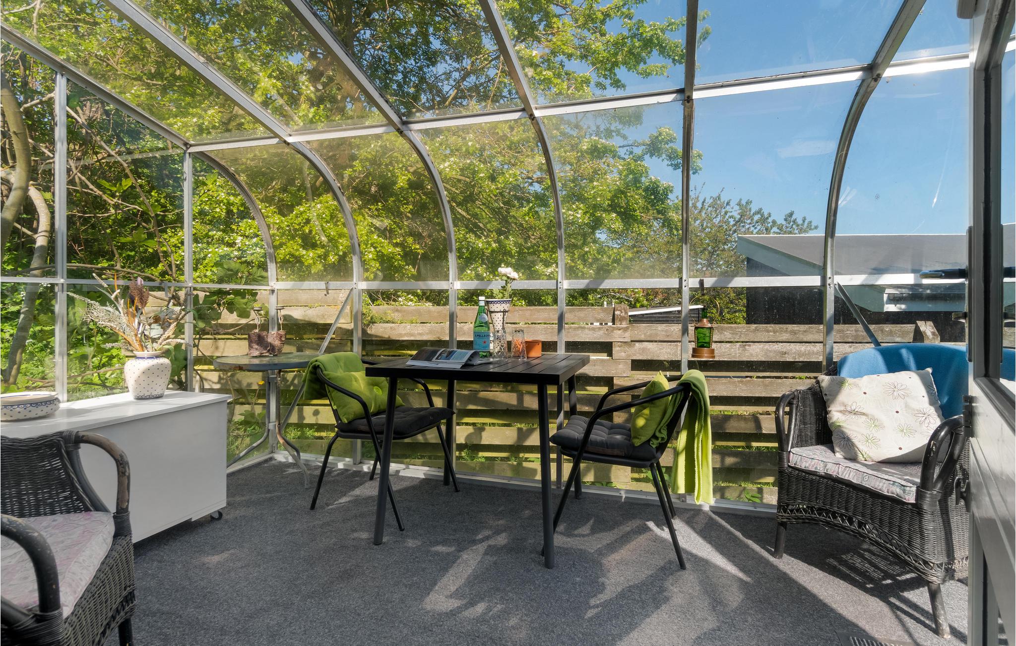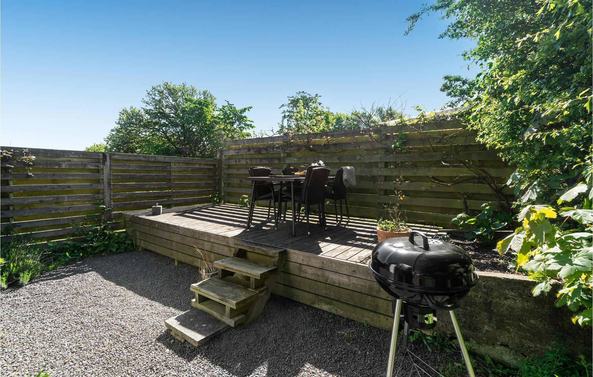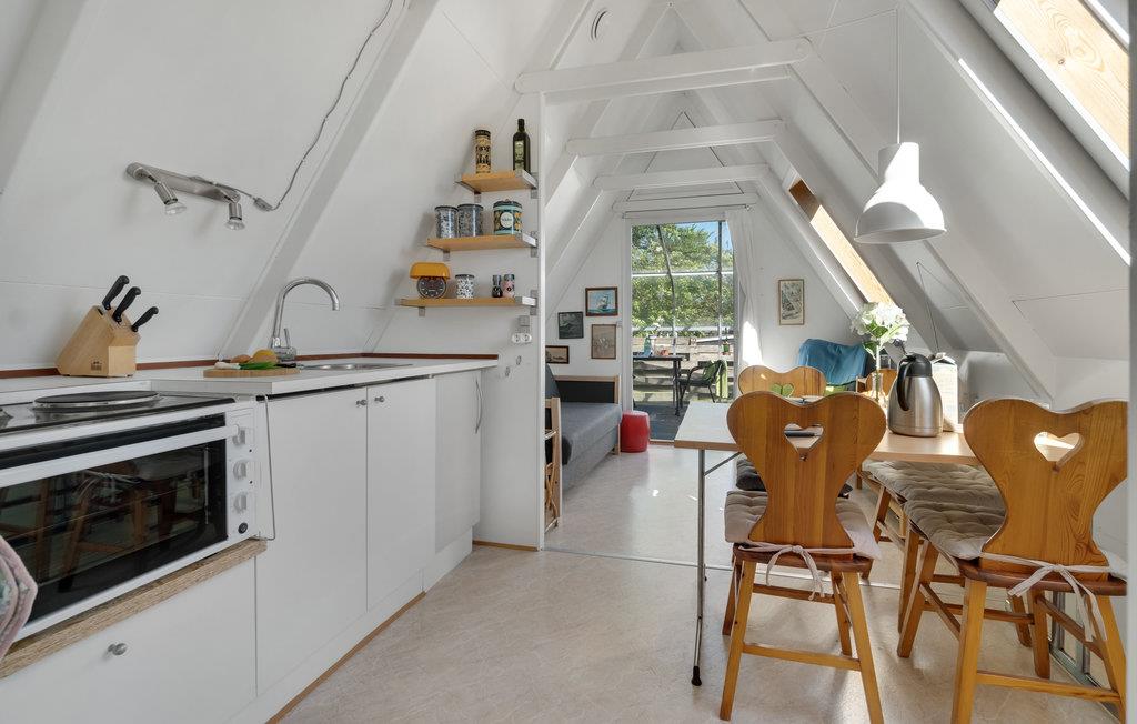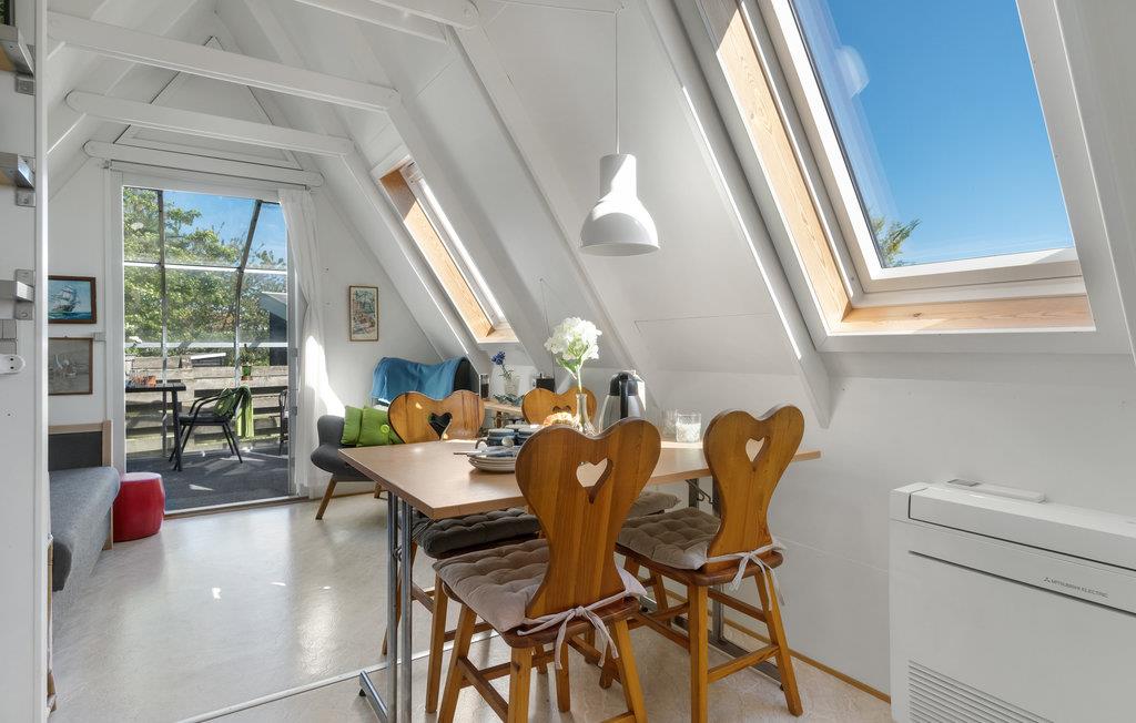 Det charmerende A-hus har alt, hvad I har brug for til en vellykket ø-ferie på relativt lidt plads. Huset egner sig både til den romantiske parferie og til den lille familie og er optimalt indrettet, så I mærker følelsen af at være hjemme. Tænd for morgenradioen og gør morgenmaden parat. Måske tager I en lille svingom i køkkenet? Planlæg dagens udflugt over morgenkaffen på den overdækkede terrasse. Nyd lange lune aftener på den åbne terrasse med god vin og mad fra kuglegrillen. Snup en frisk dukkert i havet, så tit I vil, før vandet er kun nogle få hundrede meter væk.