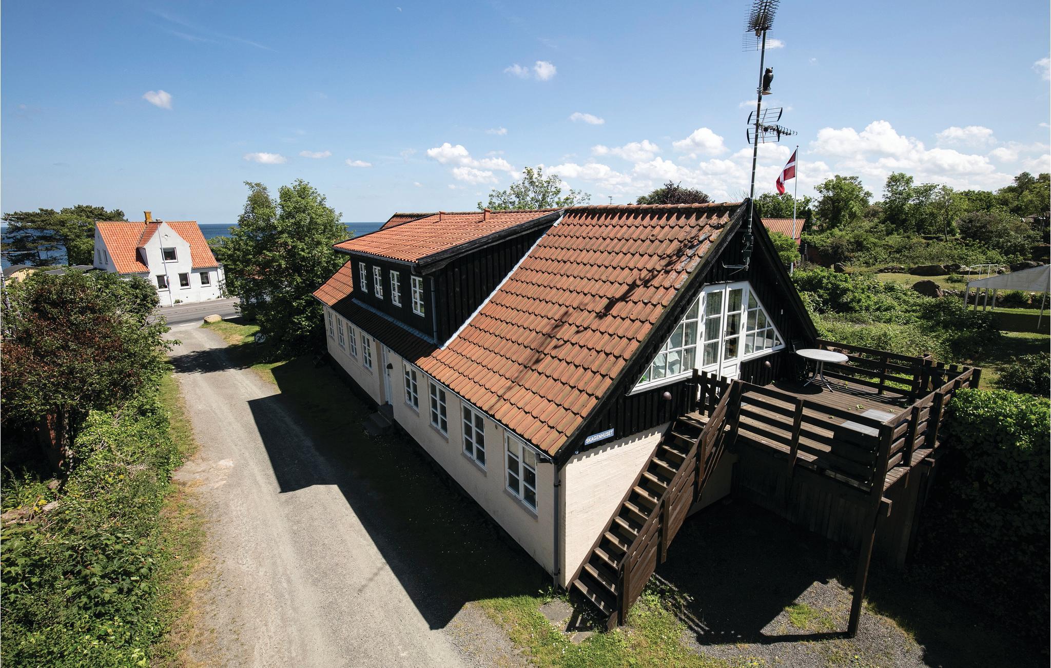 Flot renoveret ferielejlighed i den gule ejendom "Skagenhuset" beliggende nær flot klippekyst og med fælles udendørs swimmingpool (opvarmet ca. 10.juni - 5. sept.) samt fælles legeplads og boldbane, altsammen i et skønt og børnevenligt område. Lejligheden ligger på 1. sal med udgang til en skøn terrasse med havkig, havemøbler og grill. Nydelig indretning med komfortable møbler, et pænt åbent køkken med opvaskemaskine og et nydeligt lyst badeværelse. Her er naturligvis gratis trådløst internet til rådighed. Dejlig terrasse med havemøbler og grill i et hyggeligt område.Godt nærmiljø med klippepartier og flotte fællesarealer i område med flere huse og lejligheder kaldet "Madseløkke", ligesom I også har adgang til fælles vaskeri (mod betaling). Fra lejligheden, der er nabo til lejlighederne I56151 og I56152, er der ikke langt til den smukke klippekyst, cykelsti til Sandvig og Allinge og nær til indkøbsmuligheder og restauranter samt badestrande i såvel Sandvig som Allinge. Lejligheden ligger ud til vej og er røgfri.