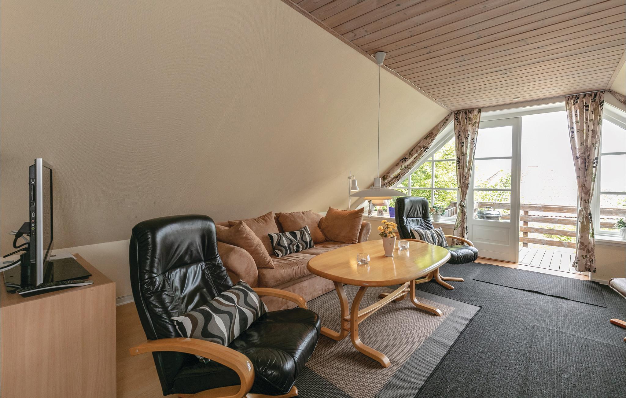 Flot renoveret ferielejlighed i Skagenhuset med havudsigt, fælles pool, legeplads og nær klippekysten i Allinge-Sandvig.