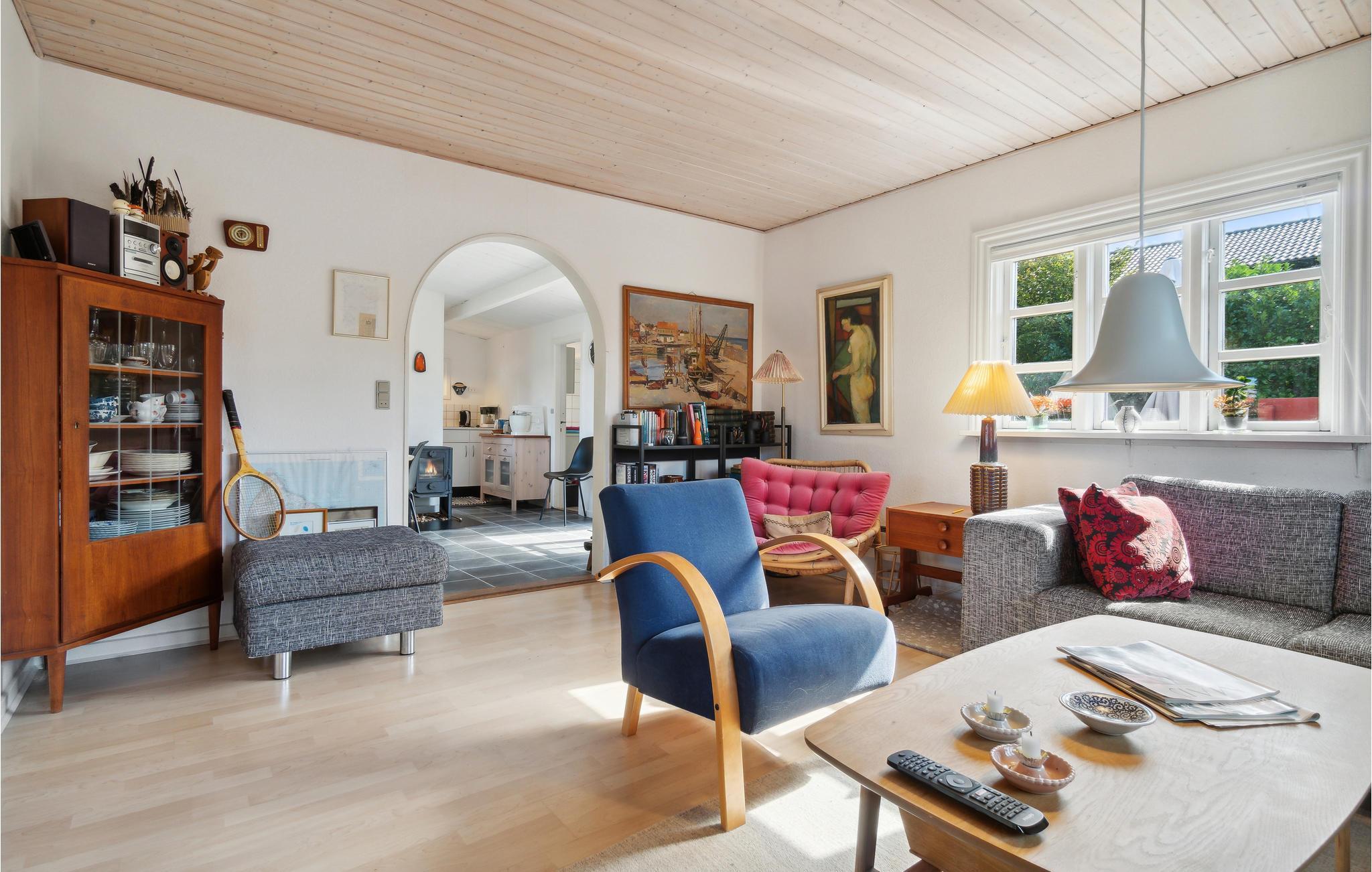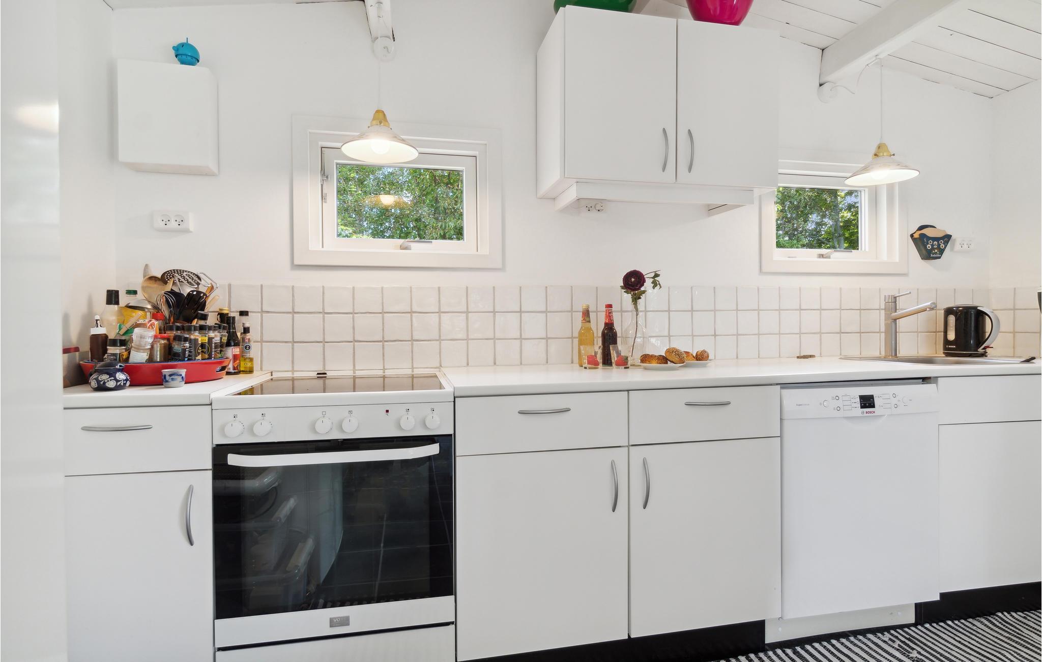 Tilbring en afslappende ferie med familiehygge på Bornholms nordspids. Det indbydende og hjemlige hus har alt, hvad I behøver til en ubekymret ferie og inviterer til afstressende familieaftener i sofaen og sjove stunder ved spisebordet i køkkenet med praktisk klinkegulv. Nyd, at I ikke skal haste af sted på arbejde og indtag morgenmaden i fred og ro. På den sydvendte terrasse venter solbadning og fælles måltider under åben himmel. Leg med jeres børn i den indhegnede have, tænd op i kuglegrillen om aftenen og bag snobrød på bålpladsen under stjernerne. Boligen ligger tæt på smuk natur, og efter en kort gåtur kommer I til stranden, den lille havn og hyggelige Sandvig, hvor minigolf, legepladser og restauranter venter på jer.