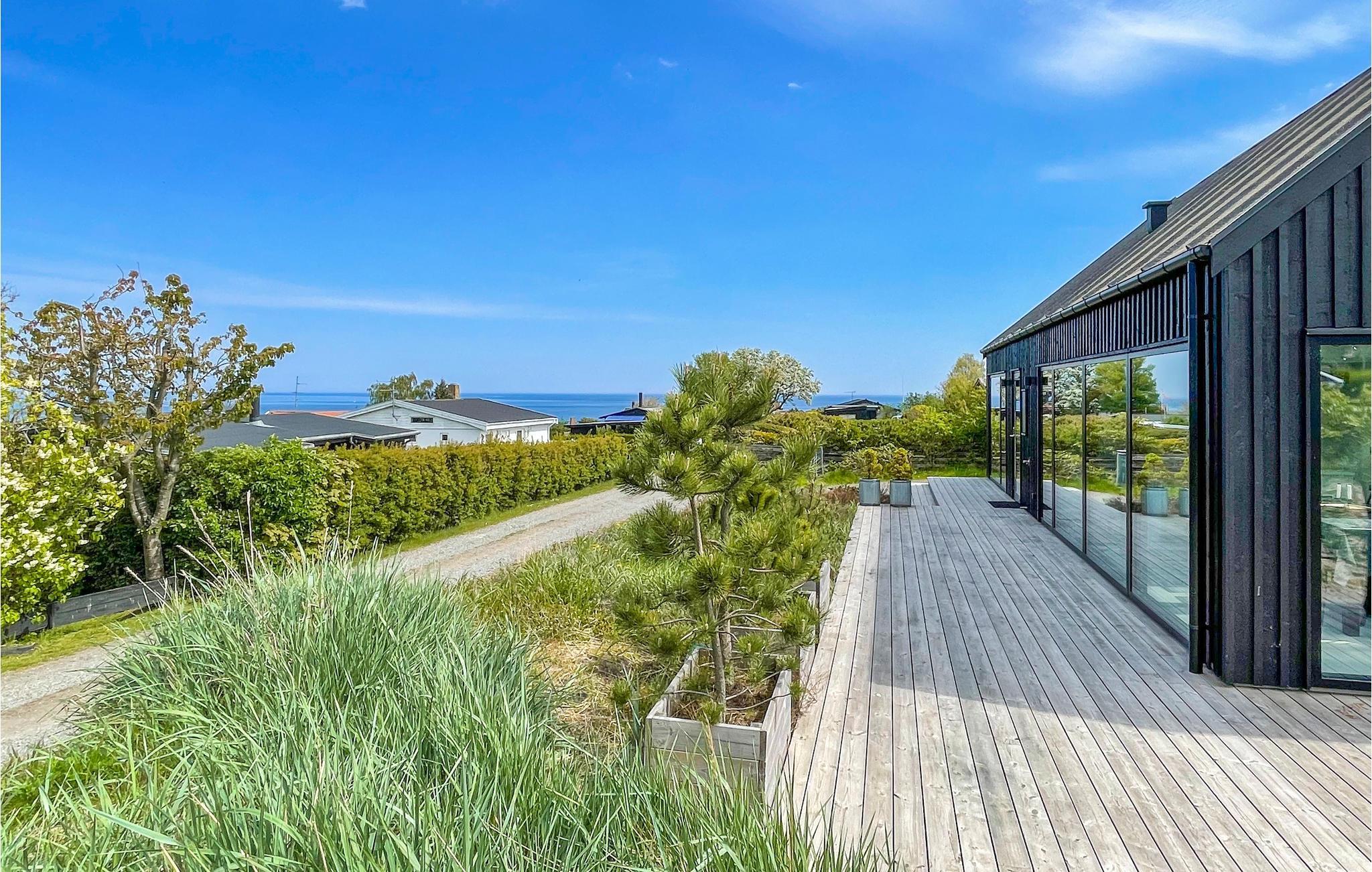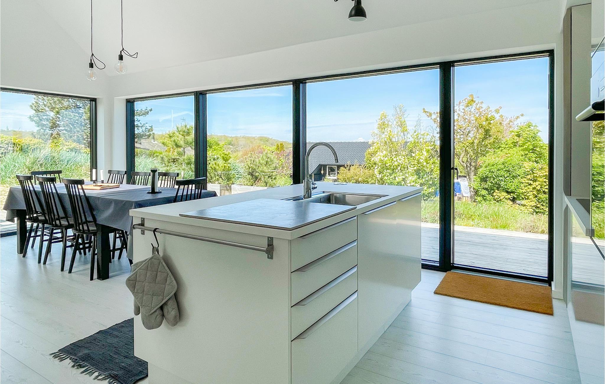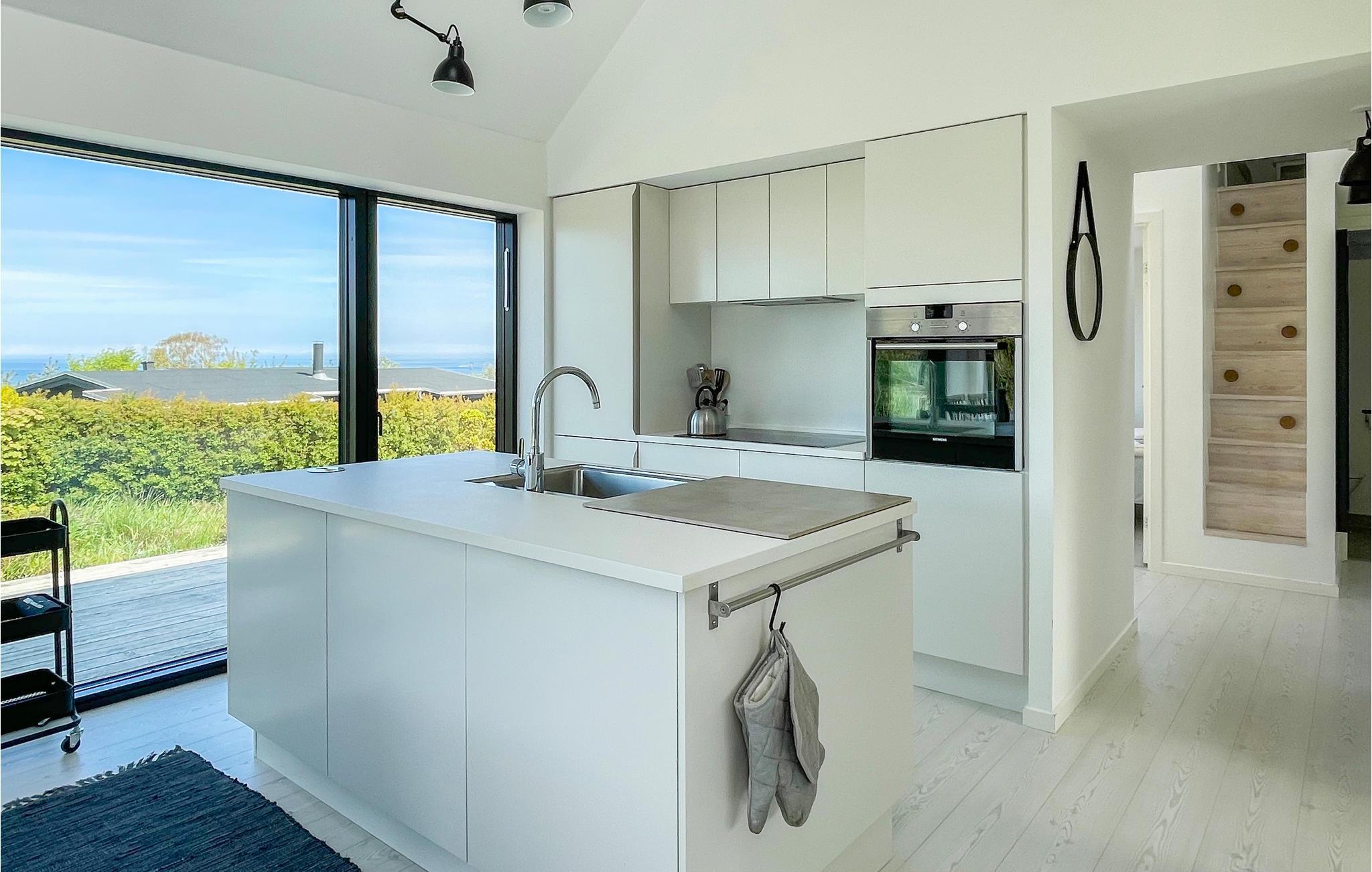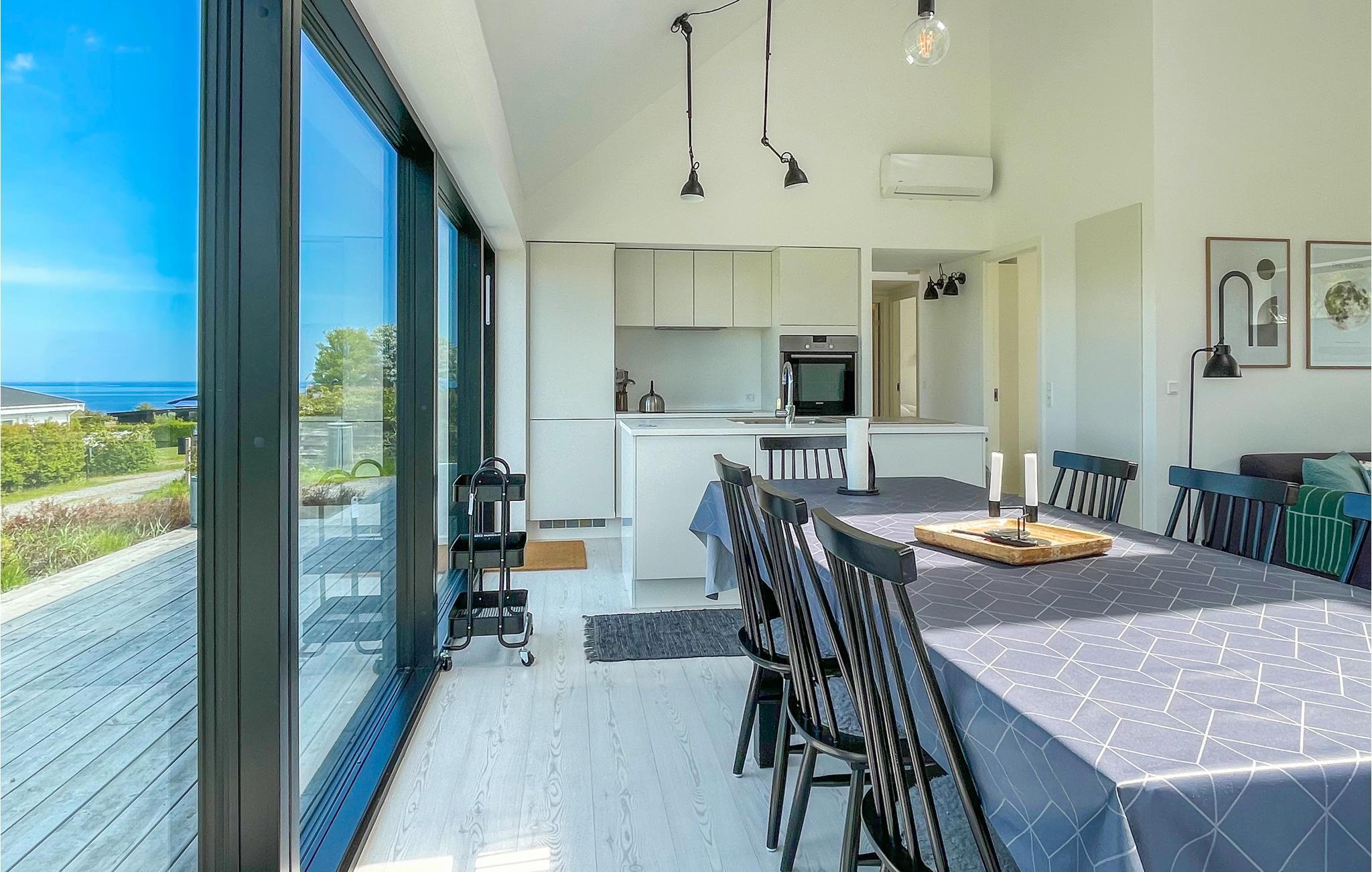 Flot feriehus med havudsigt i Sandvig nær strand, natur og attraktioner, med moderne faciliteter og stor terrasse.