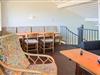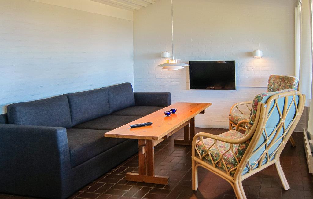 I stueetagen finder I et åbent køkken/alrum, hvor I kan tilberede lækre feriemåltider, og en trappe fører op til opholdsstuen med TV, radio/CD og sovesofa, hvor I helt sikkert kommer til at tilbringe mange hyggelige stunder. Herfra er der udgang til en overdækket altan, hvorfra I kan nyde havudsigten til en kop kaffe eller et godt glas vin om aftenen. Der er behagelig gulvvarme på badeværelset. Til lejligheden hører to overdækkede terrasser i stueetagen, hvor I kan sidde og slappe dejligt af og indsnuse den friske havluft.