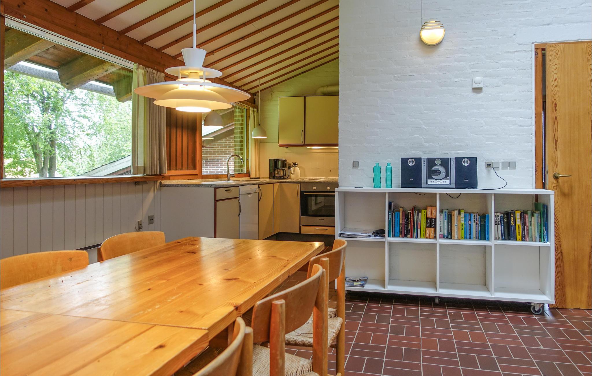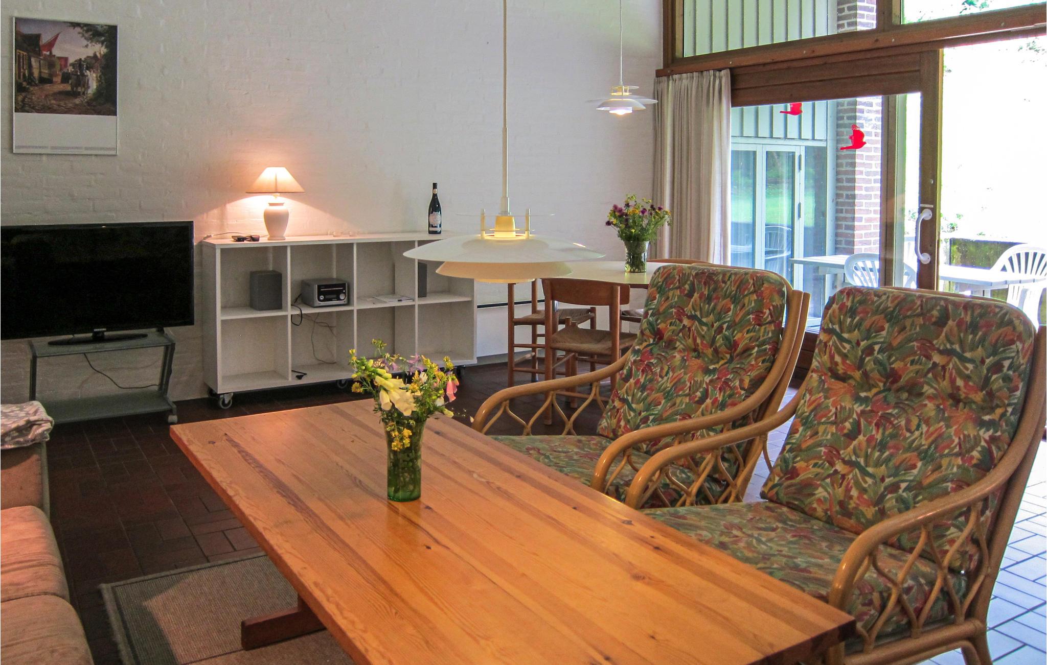 Det naturlige mødested i huset er opholdsstuen med TV og radio, hvor I kan hygge jer med kortspil, høre musik, se fjernsyn eller bare hyggesnakke. I det åbne, veludstyrede køkken kan I tilberede lækre feriemåltider. Til huset hører en delvist overdækket terrasse med havemøbler og grill, hvor I kan slappe dejligt af, sole jer, læse en god bog og tilberede lækre grillretter.