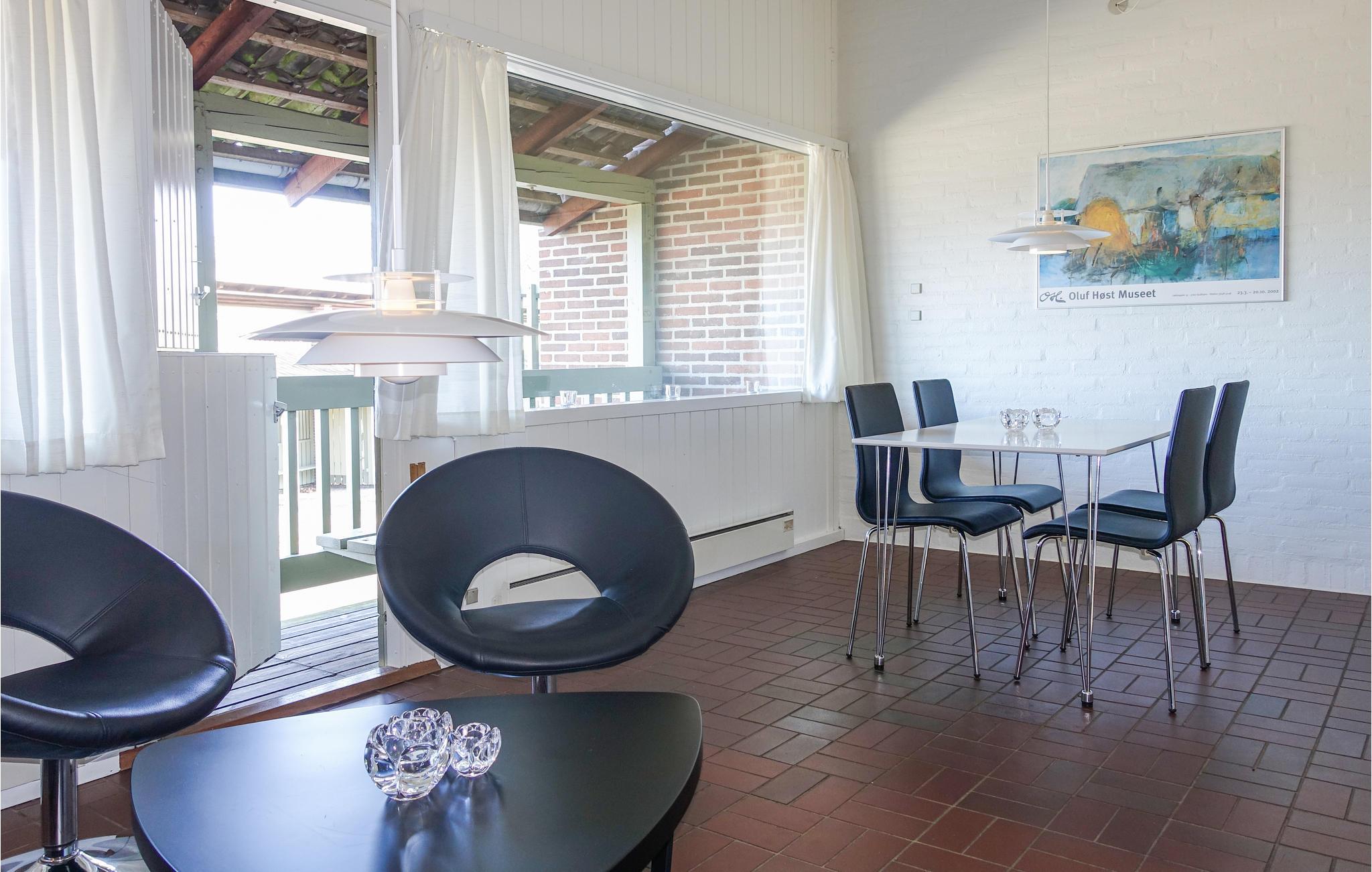 I stueetagen finder I et åbent køkken/alrum, hvor I kan tilberede lækre feriemåltider, og en trappe fører op til opholdsstuen med TV og radio, hvor I helt sikkert kommer til at tilbringe mange hyggelige stunder. Herfra er der udgang til en overdækket altan, hvor I kan nyde en kop kaffe eller et godt glas vin om aftenen. Der er behagelig gulvvarme på badeværelset. Til lejligheden hører en terrase i stueplan, hvor I kan sidde og slappe dejligt af og indsnuse den friske havluft.