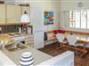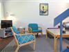 I stueetagen finder I opholdsstuen med TV, DVD og Blu-Ray, hvor I helt sikkert kommer til at tilbringe mange hyggelige stunder. En trappe fører op til køkkenet med spiseplads, hvor I kan tilberede lækre feriemåltider. Til lejligheden hører to overdækkede terrasser, hvor I kan slappe dejligt af, nyde den friske luft, læse en god bog og nyde en kop kaffe eller et godt glas vin om aftenen.