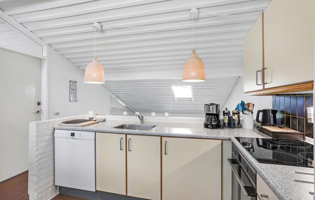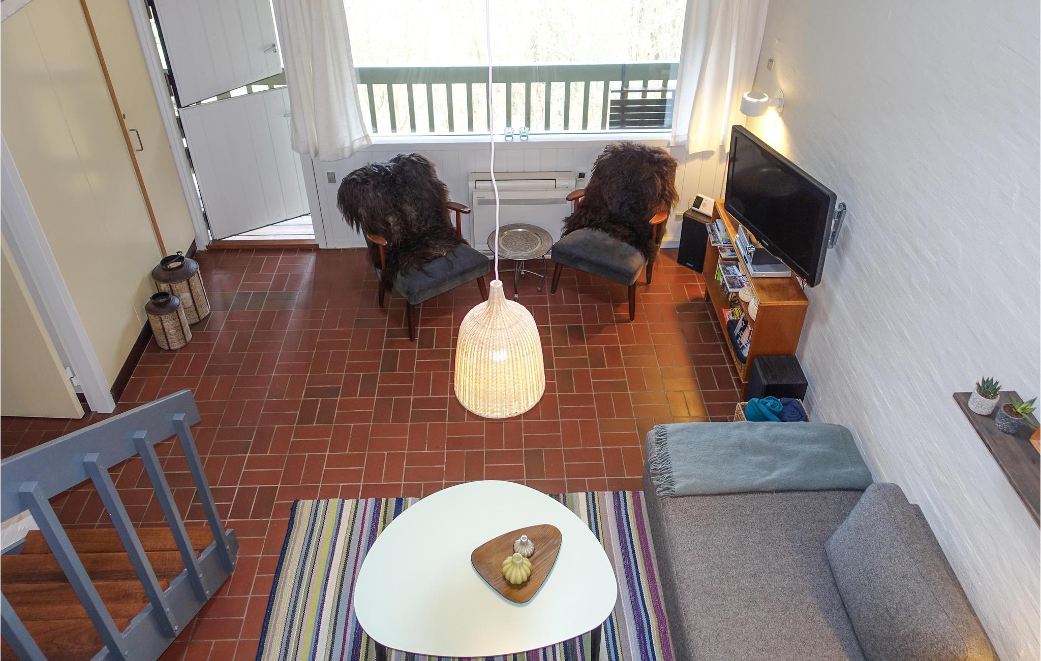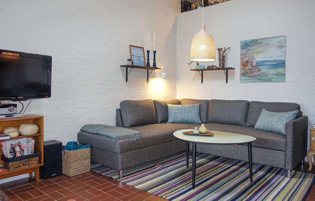 I stueetagen finder I opholdsstuen med TV, Bluetooth Radio/CD-afspiller og en dobbelt sovesofa på 150 cm. Her kommer I helt sikkert til at tilbringe mange hyggelige stunder. En trappe fører op til køkkenet med spiseplads, hvor I kan tilberede lækre feriemåltider. Der er behagelig gulvvarme på badeværelset. Til lejligheden hører to overdækkede terrasser med gasgrill, hvor I kan sidde og slappe dejligt af, nyde den friske havluft og tilberede lækre grillretter.