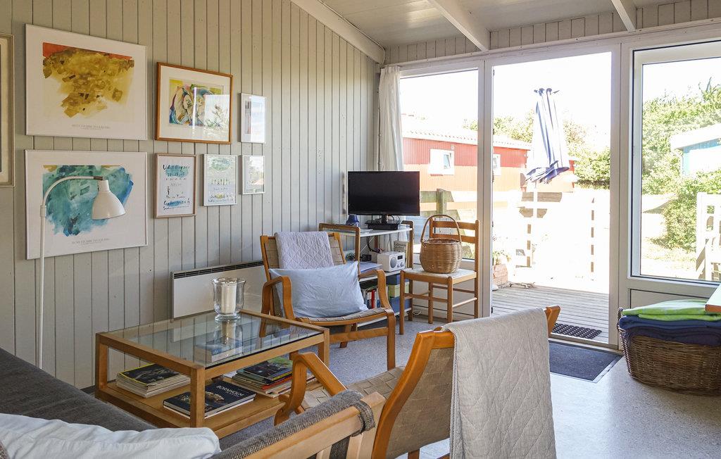 Velkommen til dette hyggelige sommerhus, der er velegnet til både et par eller en børnefamilie. Husets hjerte er den kombinerede køkken og opholdsstue, hvor I kan slappe af i komfortable møbler, se fjernsyn, høre radio eller musik og tilberede og nyde jeres feriemåltider (køkkenet har mikroovn og to kogeplader). Der er en dobbelt sovesofa (140 cm) i stuen.