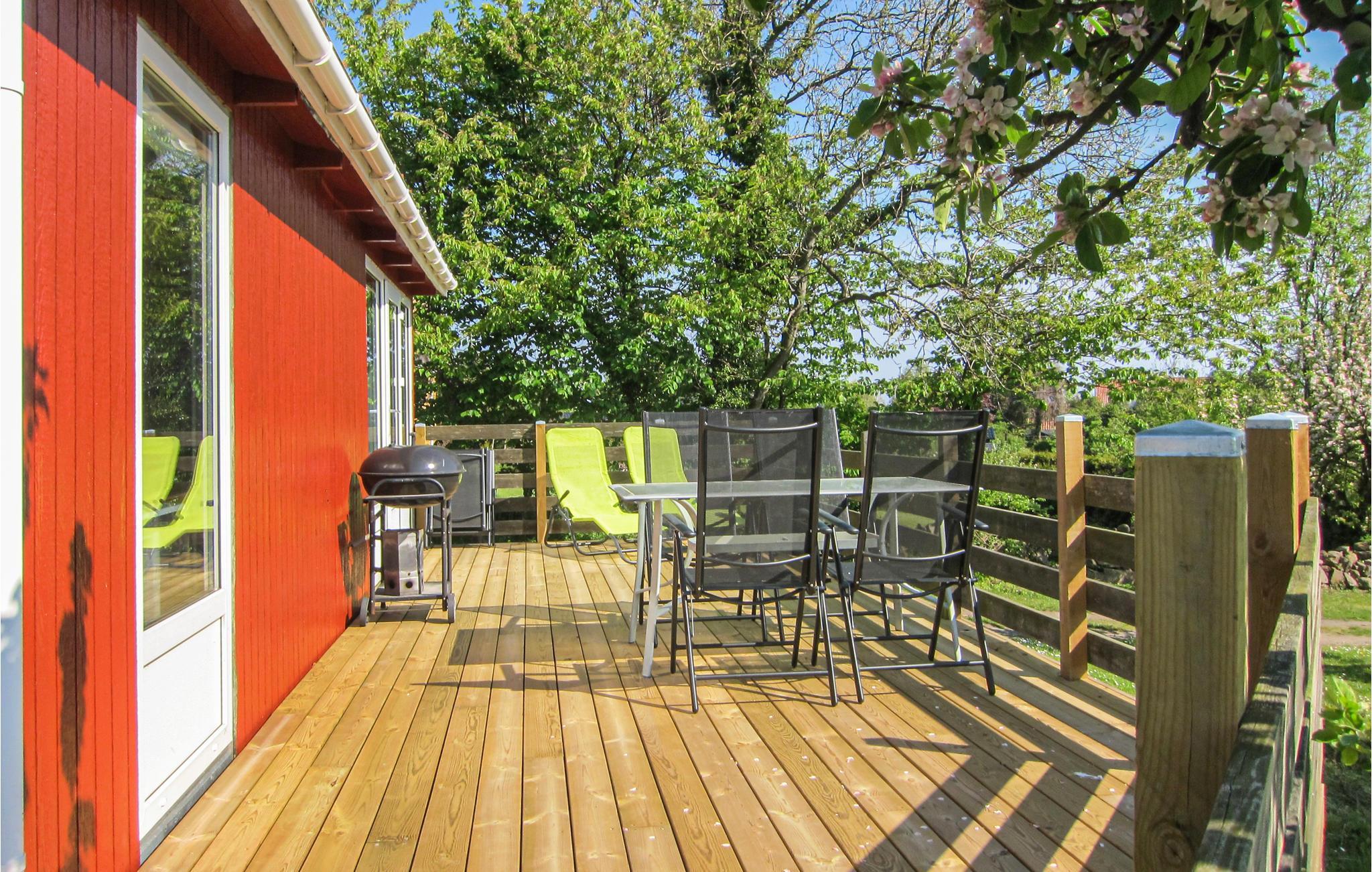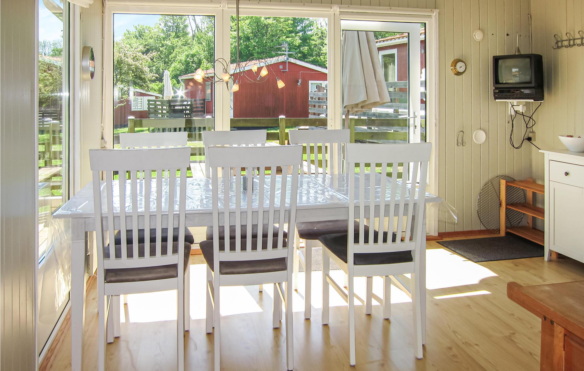 Velkommen til dette hyggelige sommerhus, der er velegnet til både to par eller en børnefamilie. I opholdsstuen kan I slænge jer i komfortable møbler, se fjernsyn og høre radio eller musik. I de køligere sæsoner kan I nyde varmen fra brændeovnen og den hyggelige atmosfære, den skaber. I køkkenafdelingen med spiseplads kan I tilberede jeres feriemåltider og derefter spise sammen ved spisepladsen. Huset har to mindre soveværelser, hver med en bred seng samt en krydskøje ovenover.
