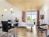 På begge sider af lokalet har I udgang til små terrasser med havemøbler, så I kan både nyde morgen- og aftensolen. Haven er til fælles brug, og her kan I også låne en grill, hvis I har lyst til at sidde "hjemme" en aften.