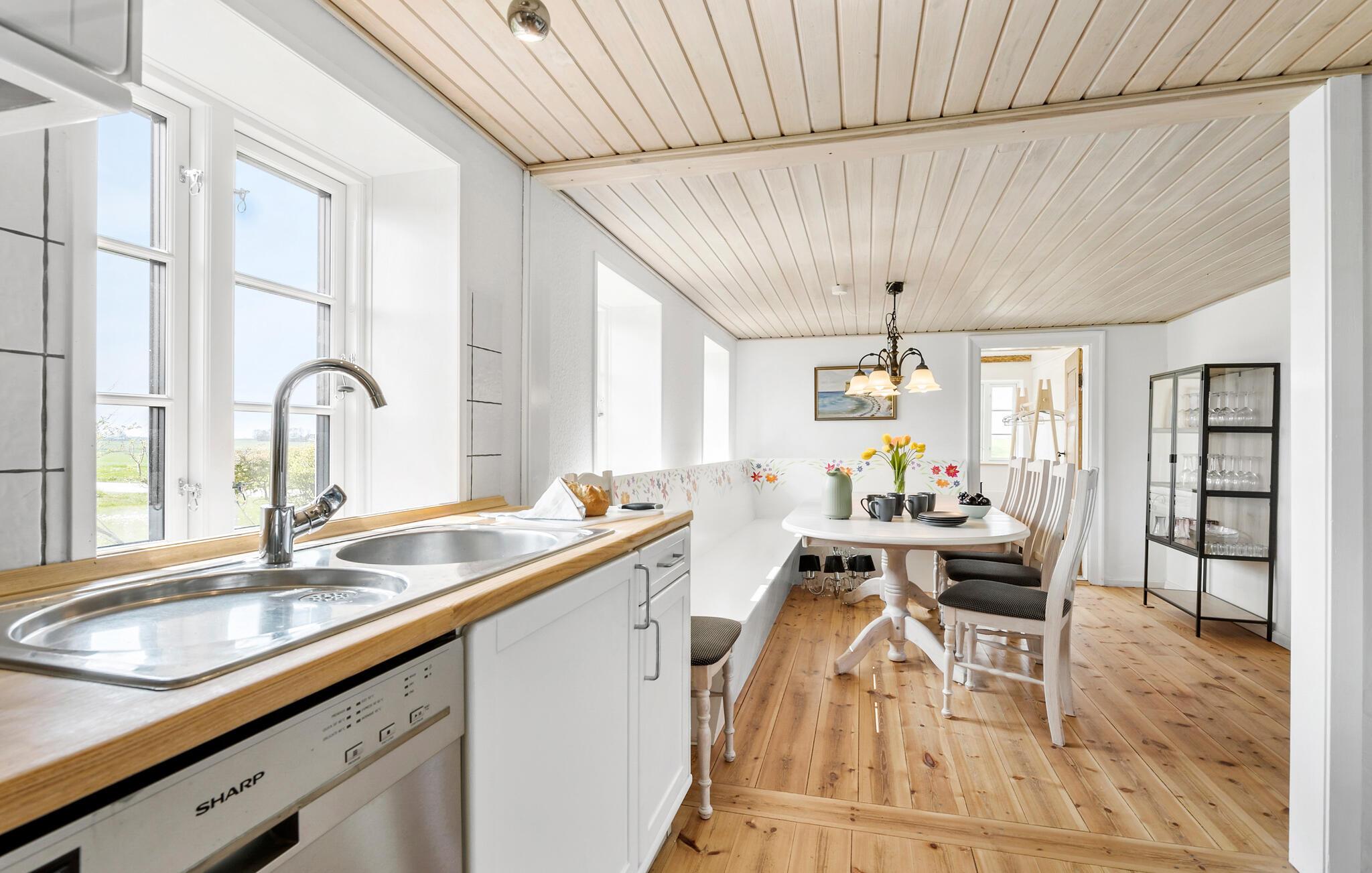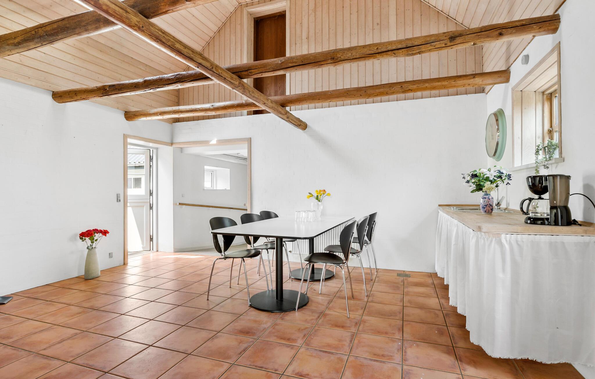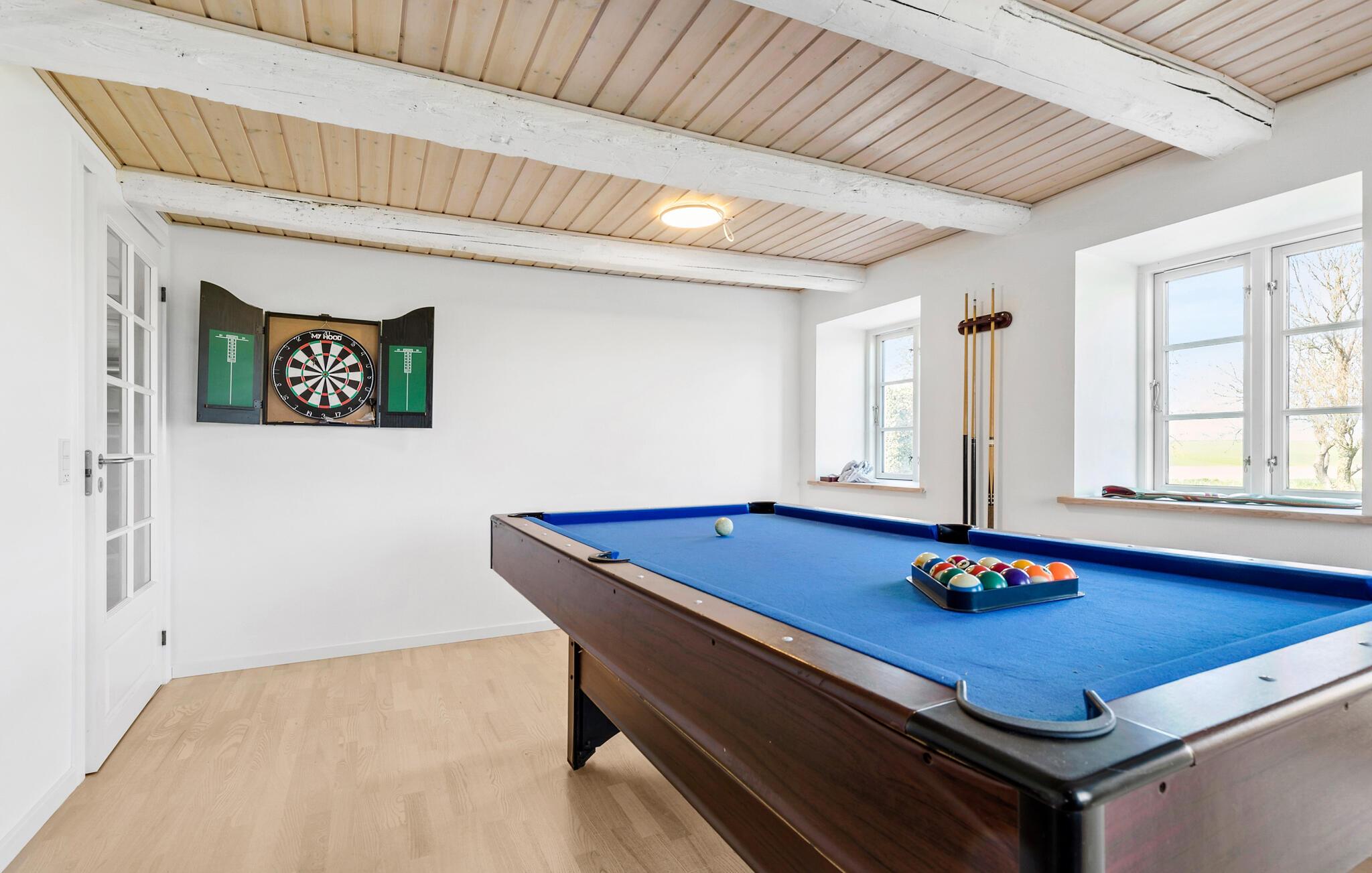 Tag den udvidede familie under armen og rejs til Djursland, hvor der venter jer en fantastisk base i dette rummelige hus. Huset er nydeligt indrettet med højt til loftet, varme træbjælker og gode faciliteter. Her får I, udover de mange kvadratmeter, et rigt udvalg af aktiviteter, så ingen kommer til at kede sig. Mens familiens kokke hygger sig med madlavningen i det veludstyrede køkken, kan andre læse en god bog ved brændeovnen eller duellere i dart eller pool i aktivitetsrummet. Dæk op til det store måltid ved det hyggelige spisebord og rund aftenen af med brætspil eller en god film i den rummelige sofa, mens I lægger planer for de kommende dage.