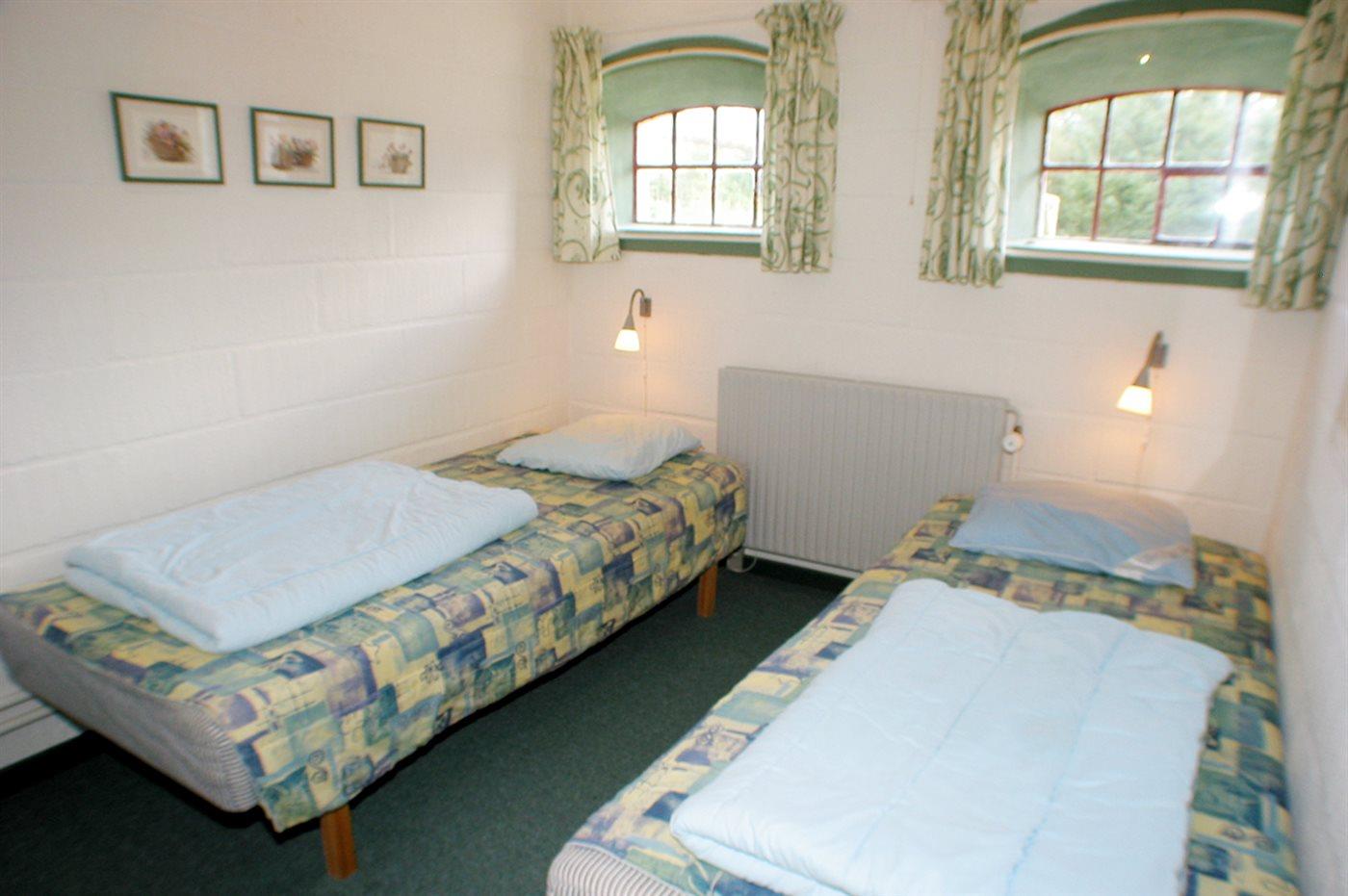 Der er i alt 2 soveværelser. Sovepladserne fordeler sig på: 2 sovepladser i dobbeltseng. 2 sovepladser i enkeltsenge. 2 sovepladser i sovesofa (dobbelt).