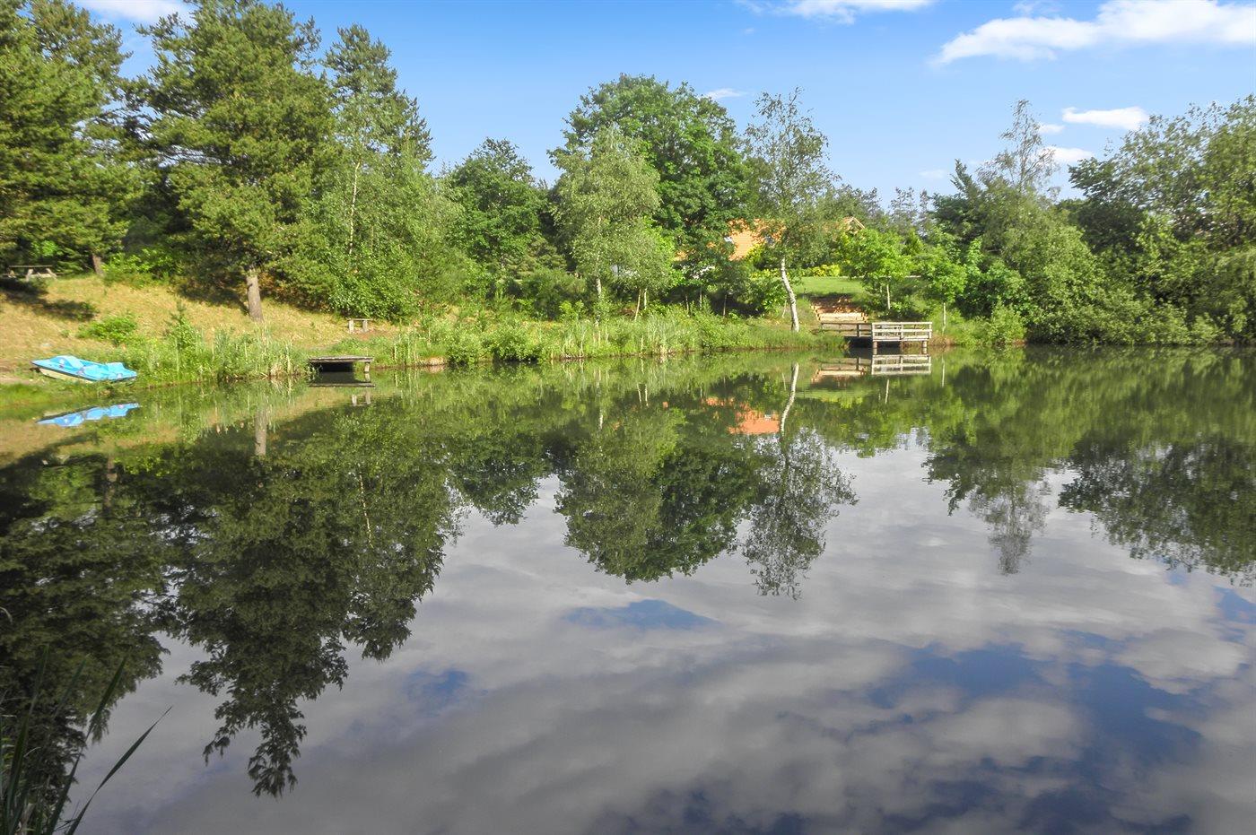 Charmerende ferielejlighed med privat fiskesø