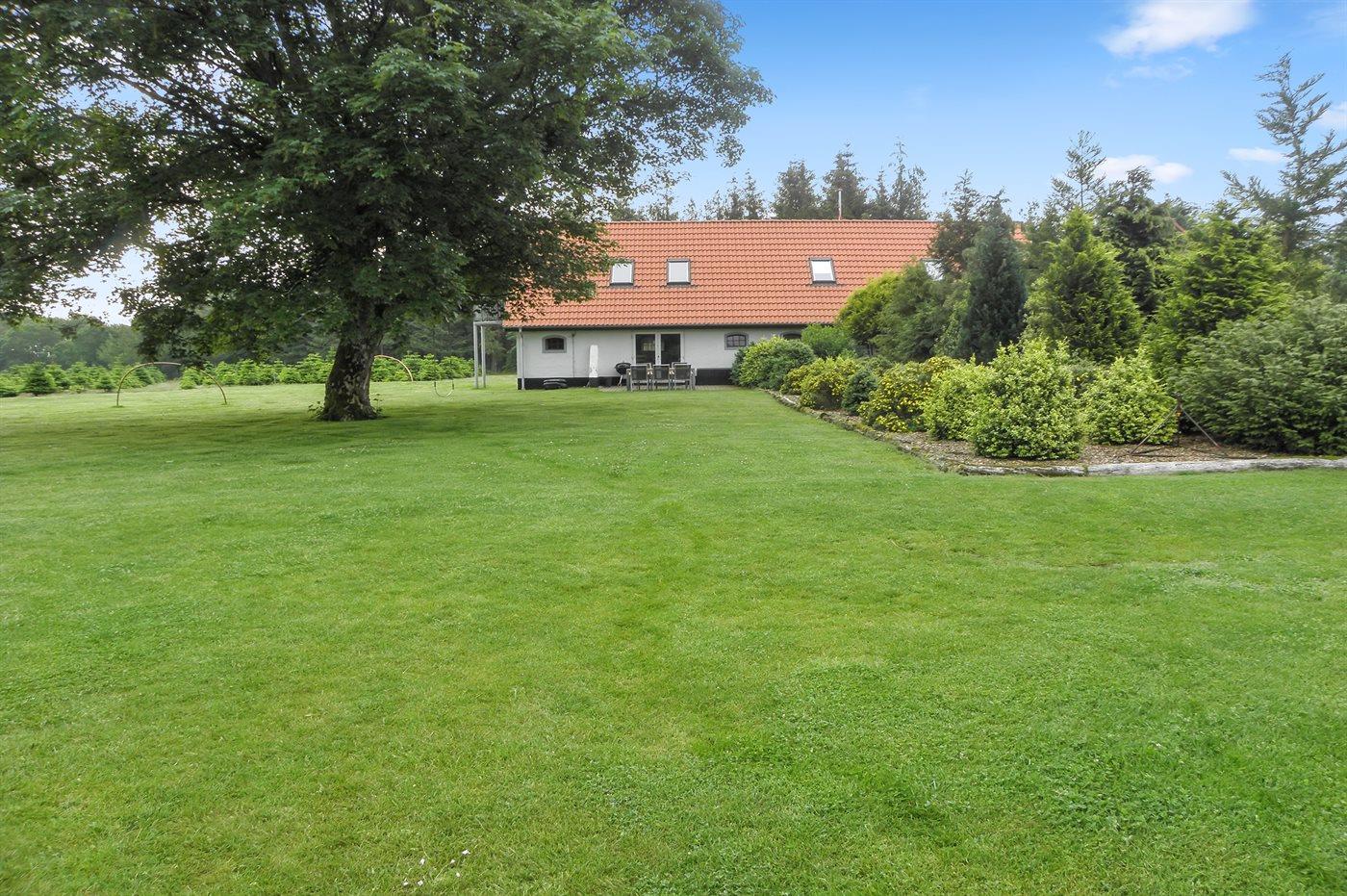 Ferieboligen er beliggende på en 300000 m² stor naturgrund. Der er 50000 m til havet. Der er 25000 m til fjorden. Nærmeste forretning er beliggende i en afstand af 3000 m. Til ferieboligen hører 20 m² terrasseareal. Gynge. Sandkasse. Legehus. Parkering ved ferieboligen.