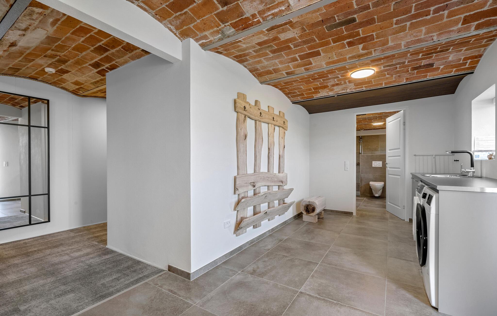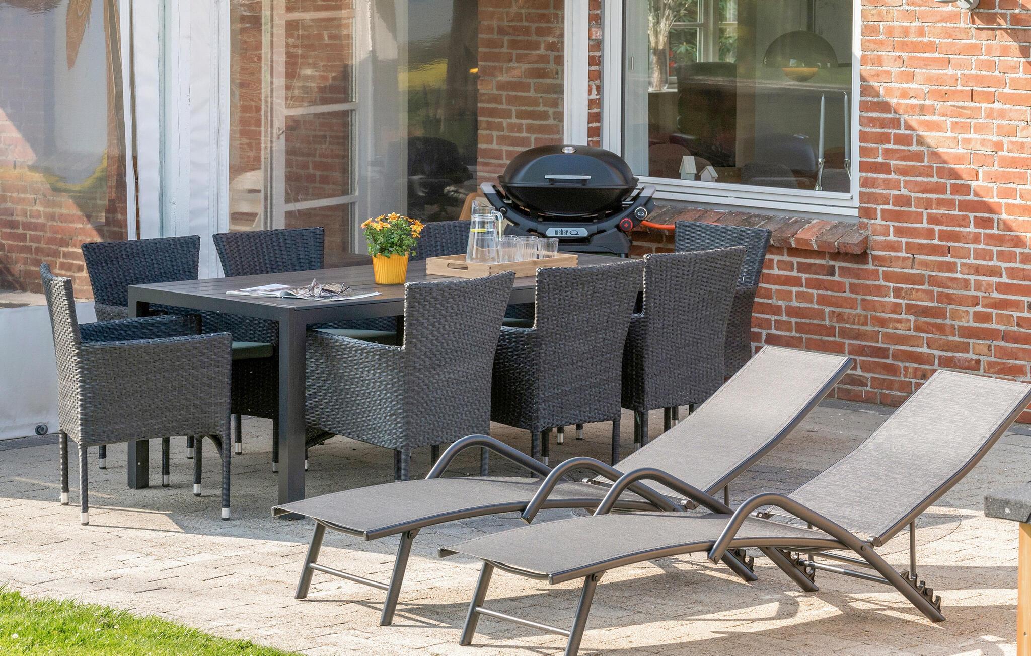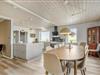 I kan se frem til gode forhold for en større gruppe børn og voksne i dette indbydende hus, som emmer af fred og ro. Stuen har godt med plads og giver jer en behagelig ramme om hyggestunderne, når I vender hjem efter dagens udflugter. Lav ferieretterne sammen i det åbne, lyse køkken og dæk op til måltiderne på det store spisebord, hvor I kan sætte jer og nyde udsigten til naturen. I aktivitetsrummet kan I hygge jer med et spil bordfodbold, læne jer tilbage med en god bog i sofahjørnet eller nyde en kop kaffe, mens I snakker om dagens oplevelser.