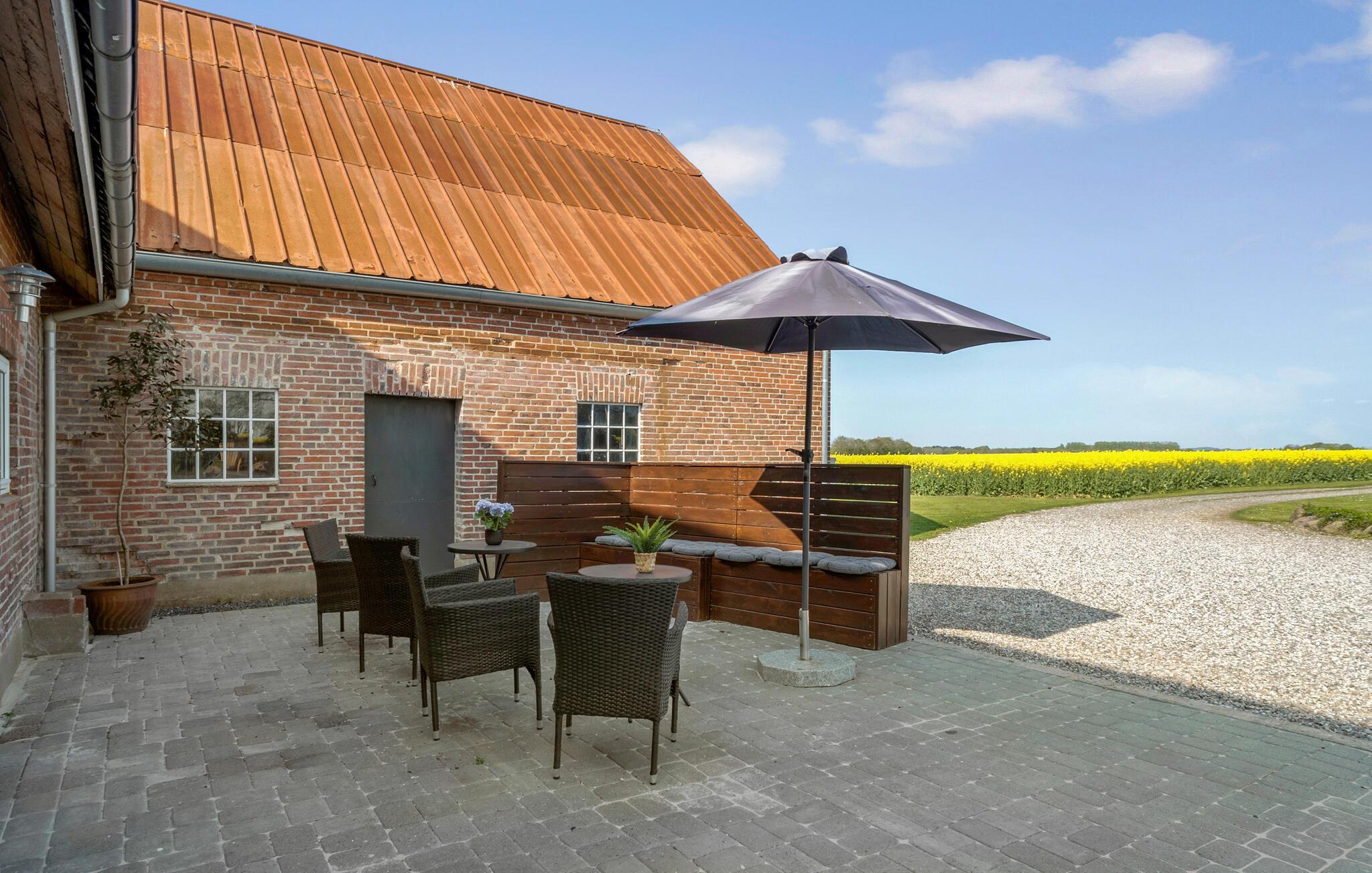 Rummeligt feriehus i Sønder Felding med sauna, vildmarksbad og smuk udsigt til grønne omgivelser.