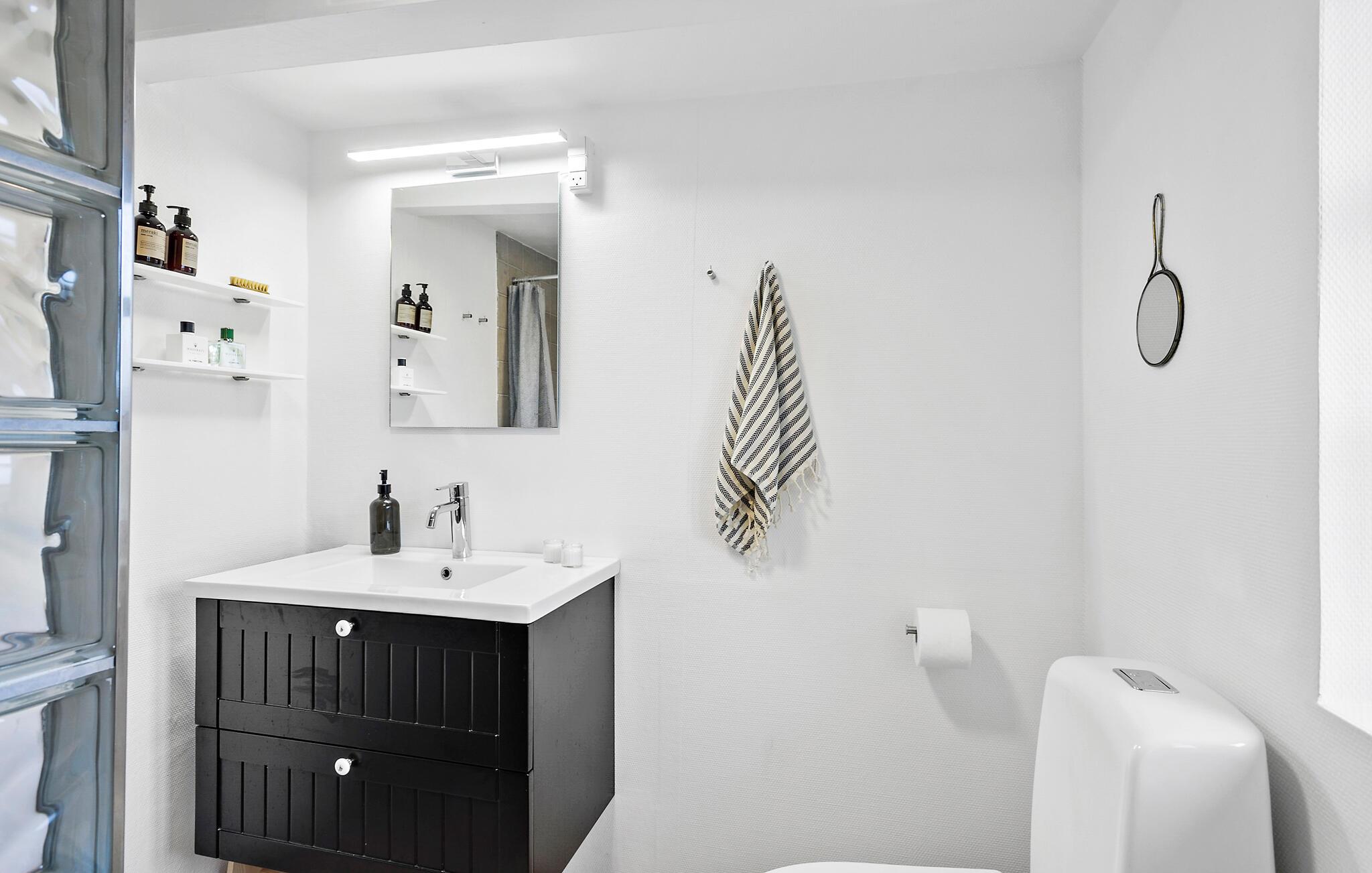 Badeværelse (nr. 1) - WC. Varmt og koldt vand. Bruser