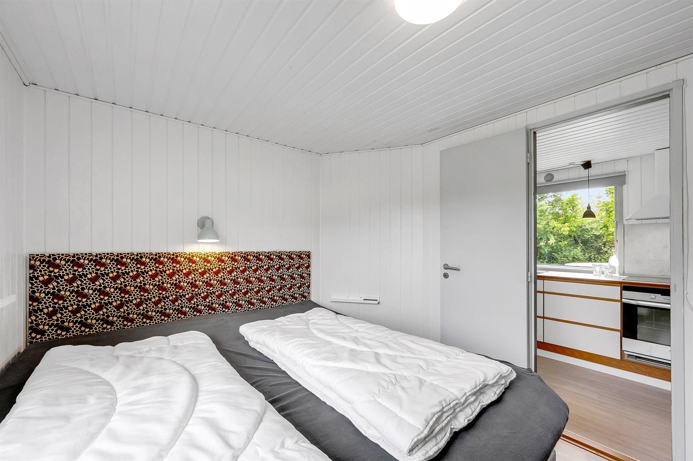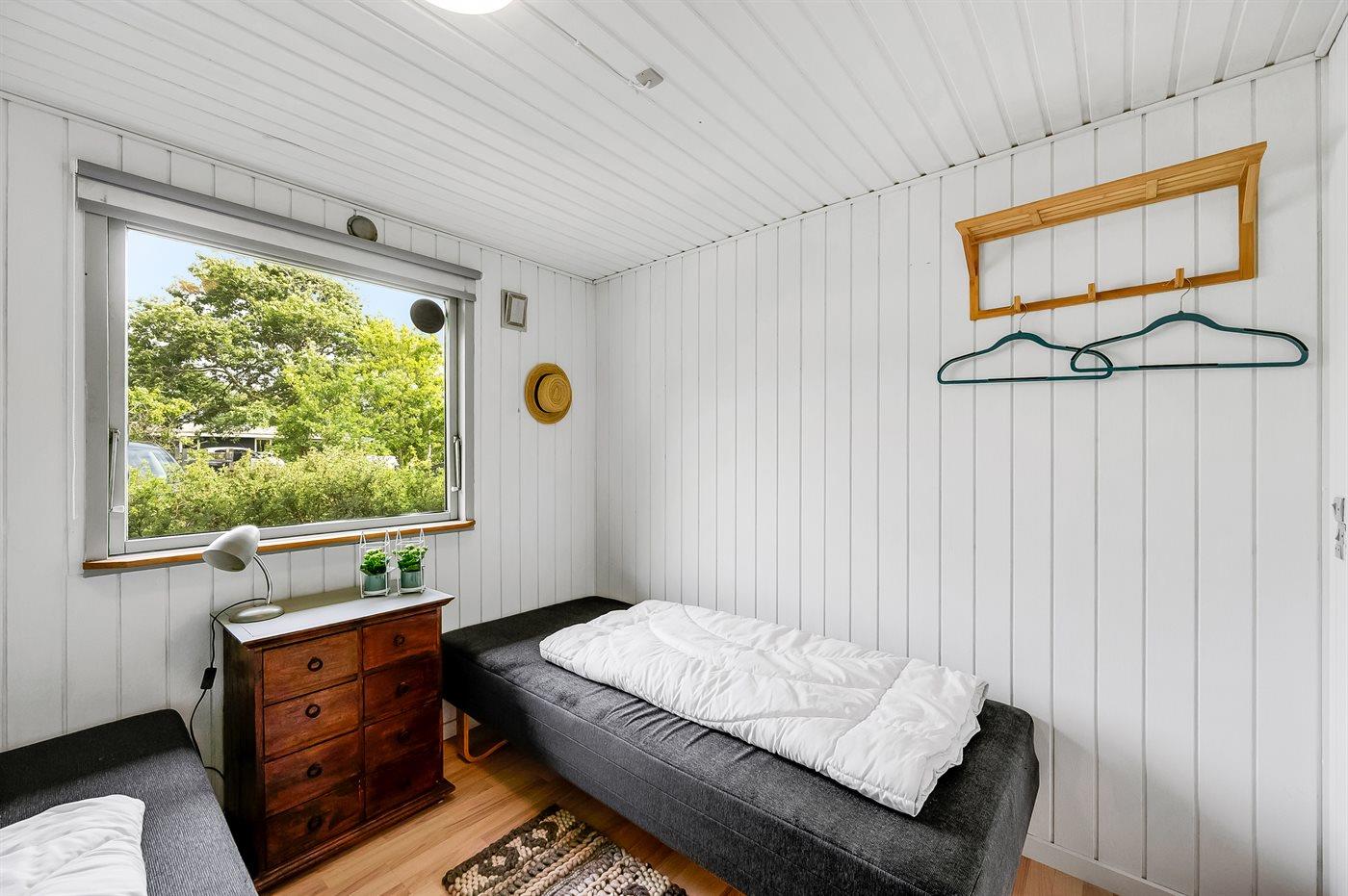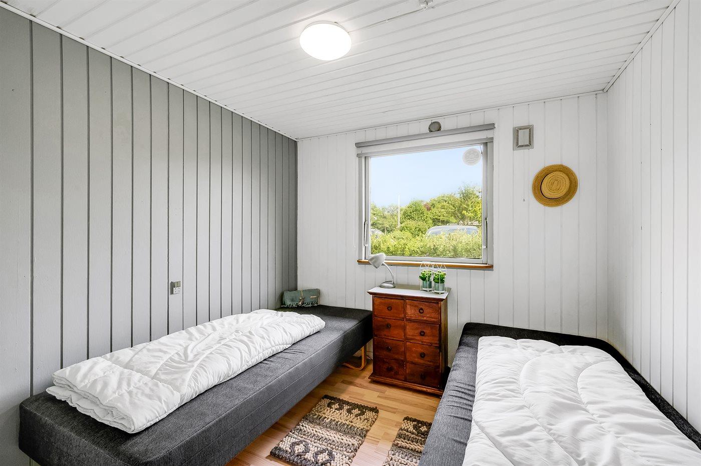 Der er i alt 2 soveværelser. Sovepladserne fordeler sig på: 2 sovepladser i dobbeltseng. 2 sovepladser i enkeltsenge. Derudover er der 1 stk. barneseng.