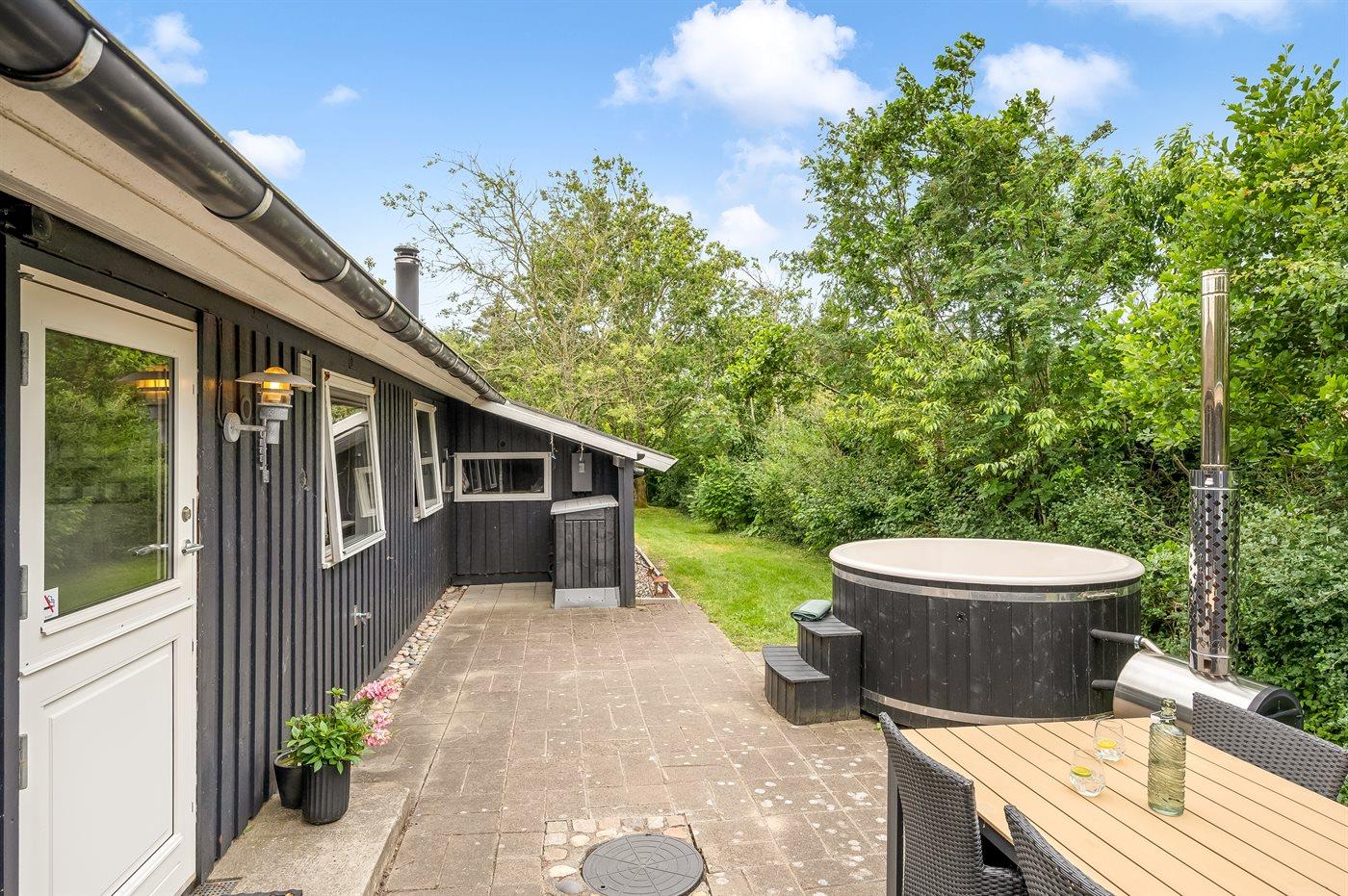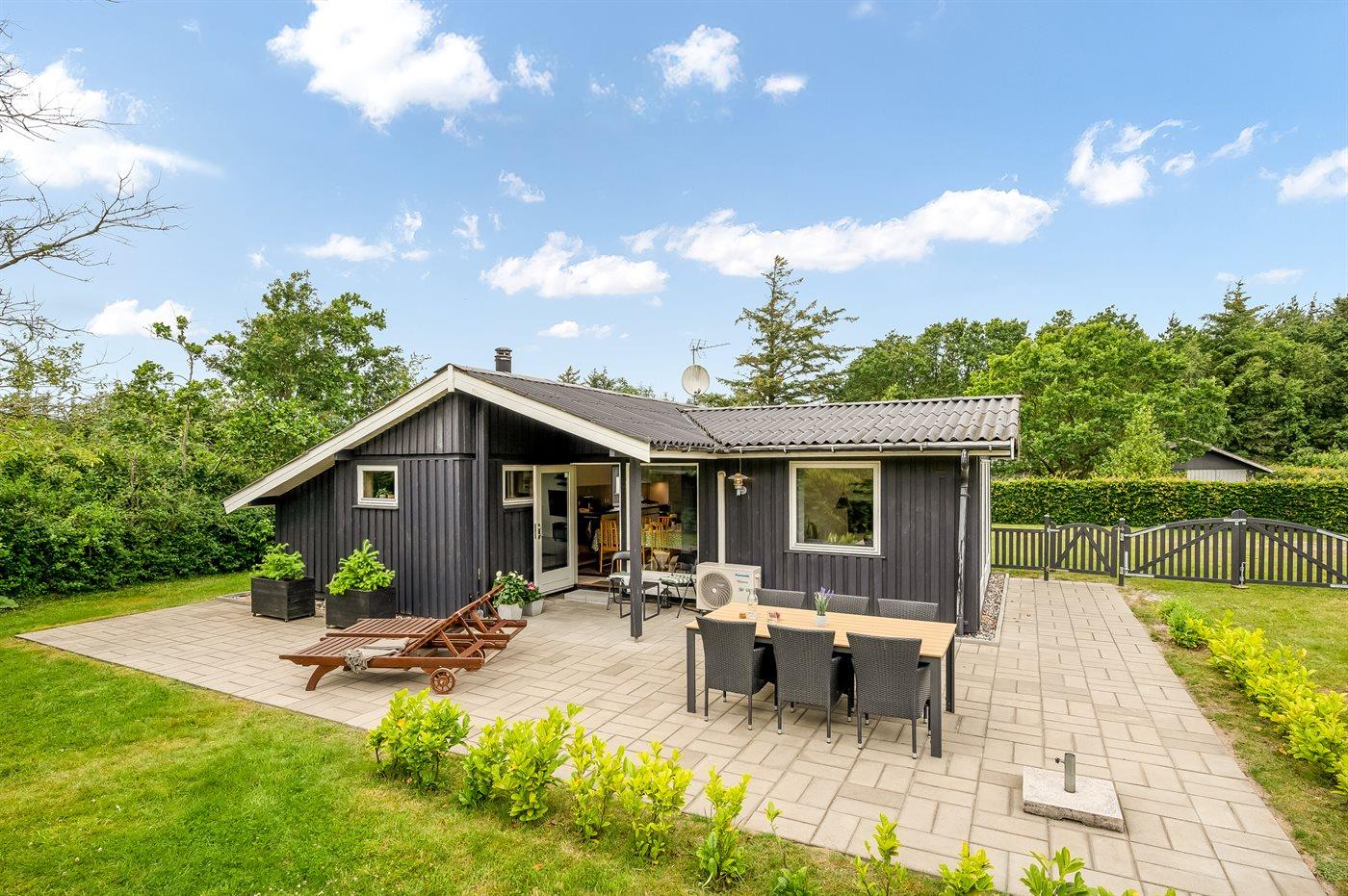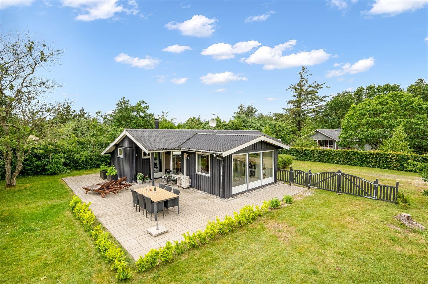 Hyggeligt sommerhus i rolige omgivelser nær Nissum Fjord med vildmarksbad og store terrasser.