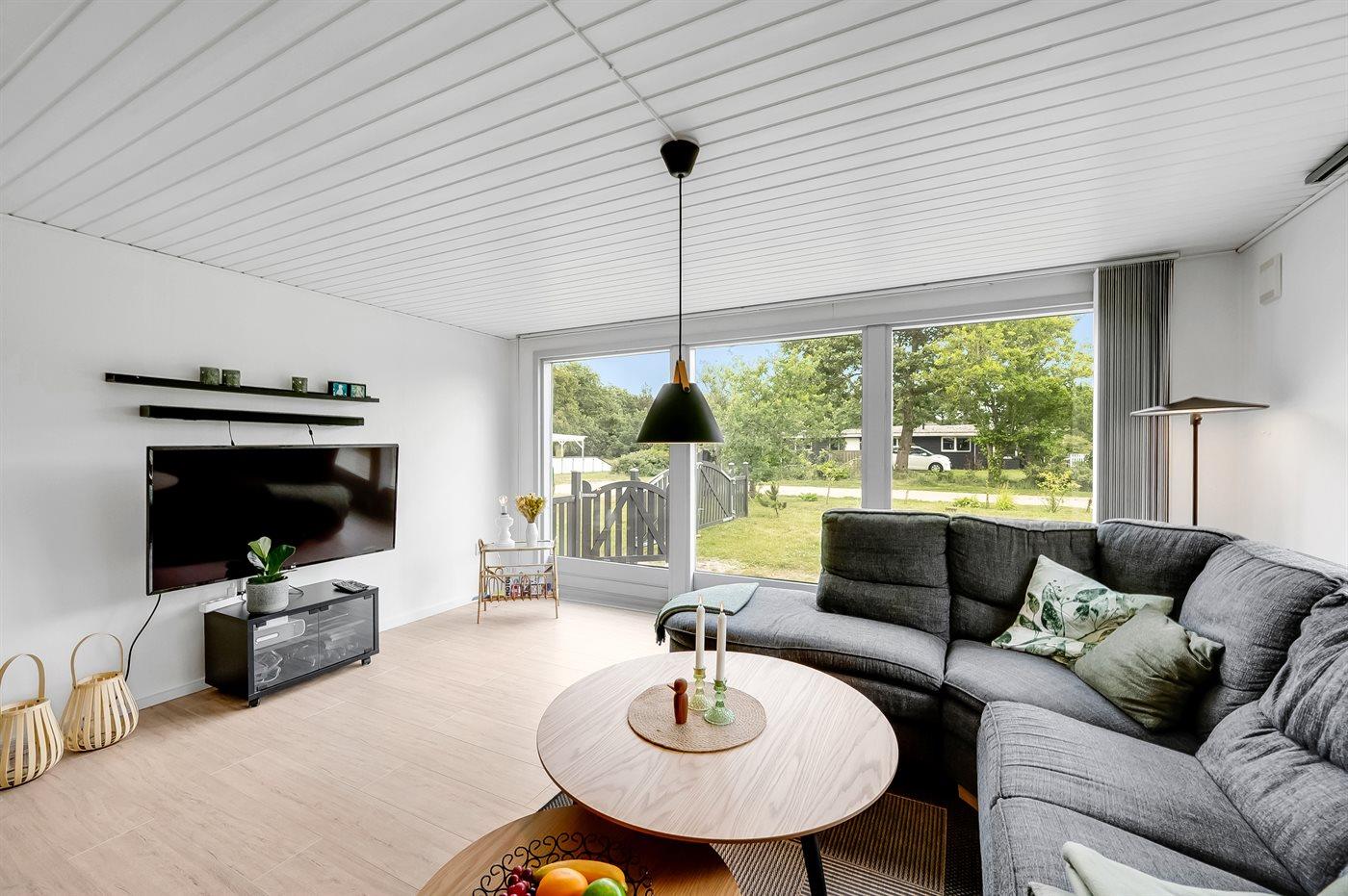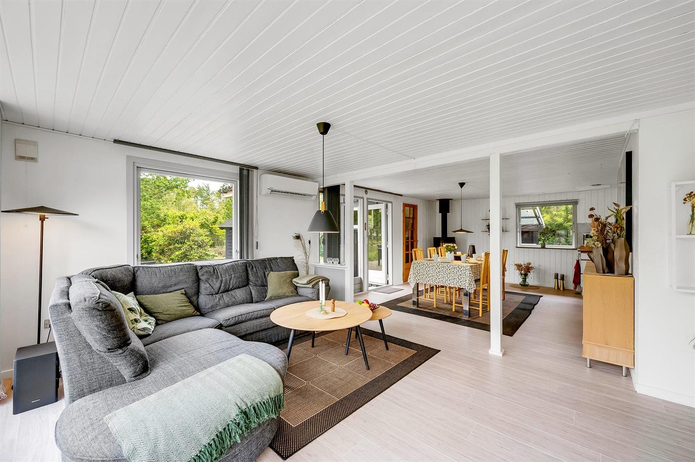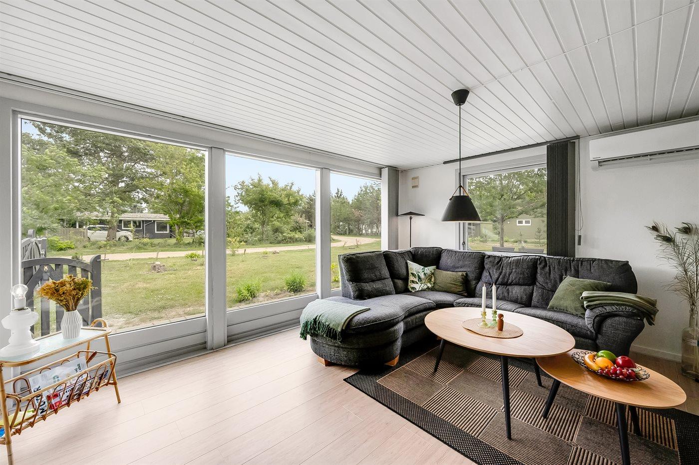 Hyggeligt sommerhus i rolige omgivelser nær Nissum Fjord med vildmarksbad og store terrasser.