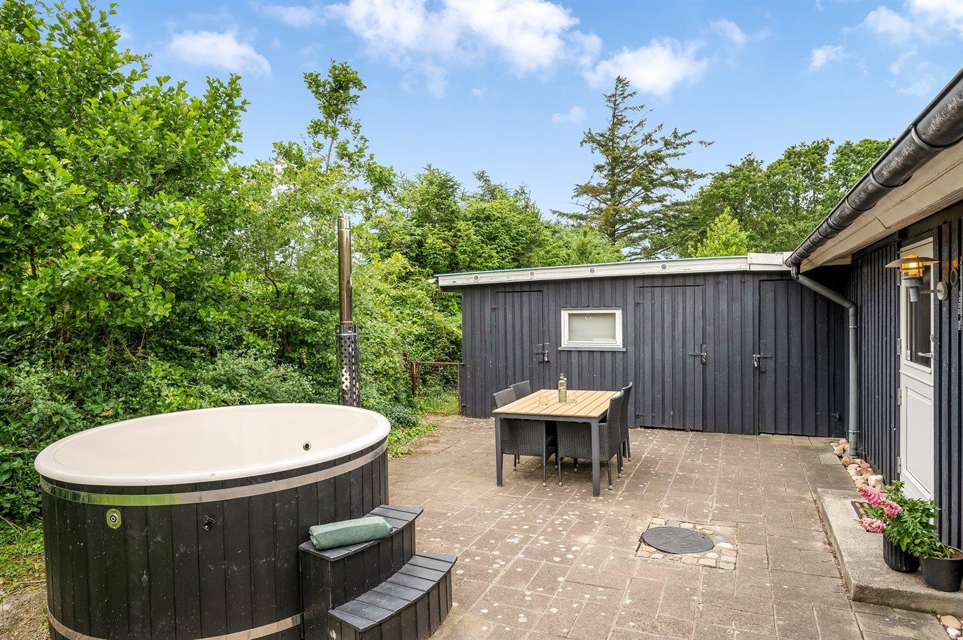 Hyggeligt, ældre sommerhus beliggende for enden af lukket vej i rolige og naturskønne omgivelser nær Nissum Fjord. På grunden findes der et vildmarksbad til 5 personer og 2 solrige terrasser på ialt 100 m².