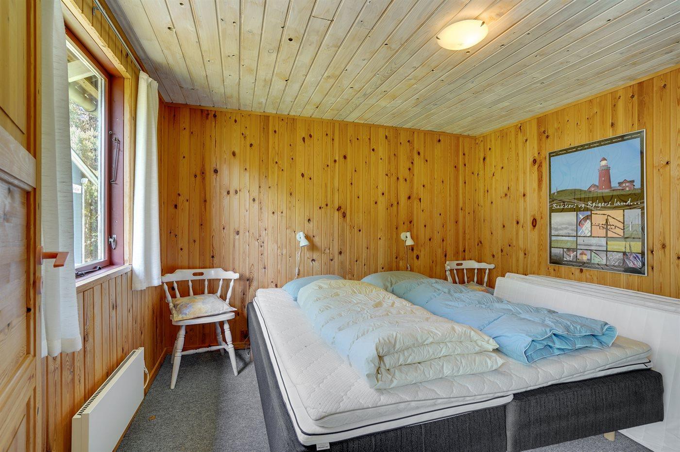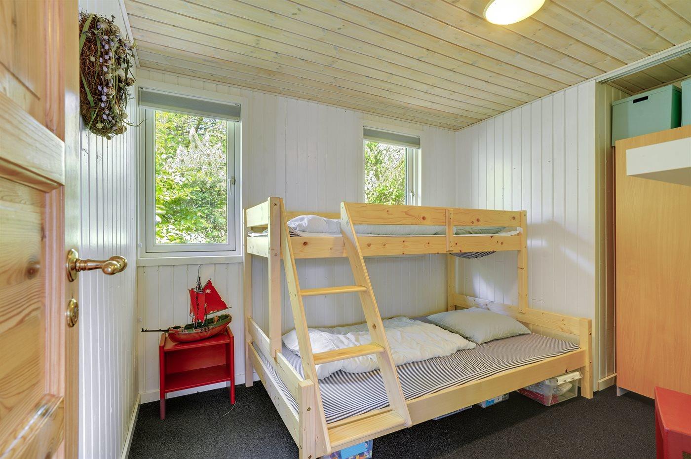 Der er i alt 3 soveværelser. Sovepladserne fordeler sig på: 4 sovepladser i dobbeltsenge. 2 sovepladser i køjeseng. 2 af disse sovepladser befinder sig i et anneks. Derudover er der 1 stk. barneseng.
